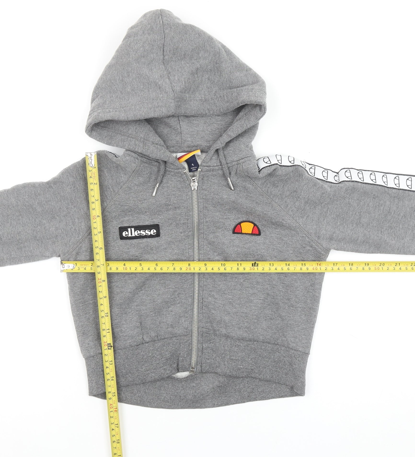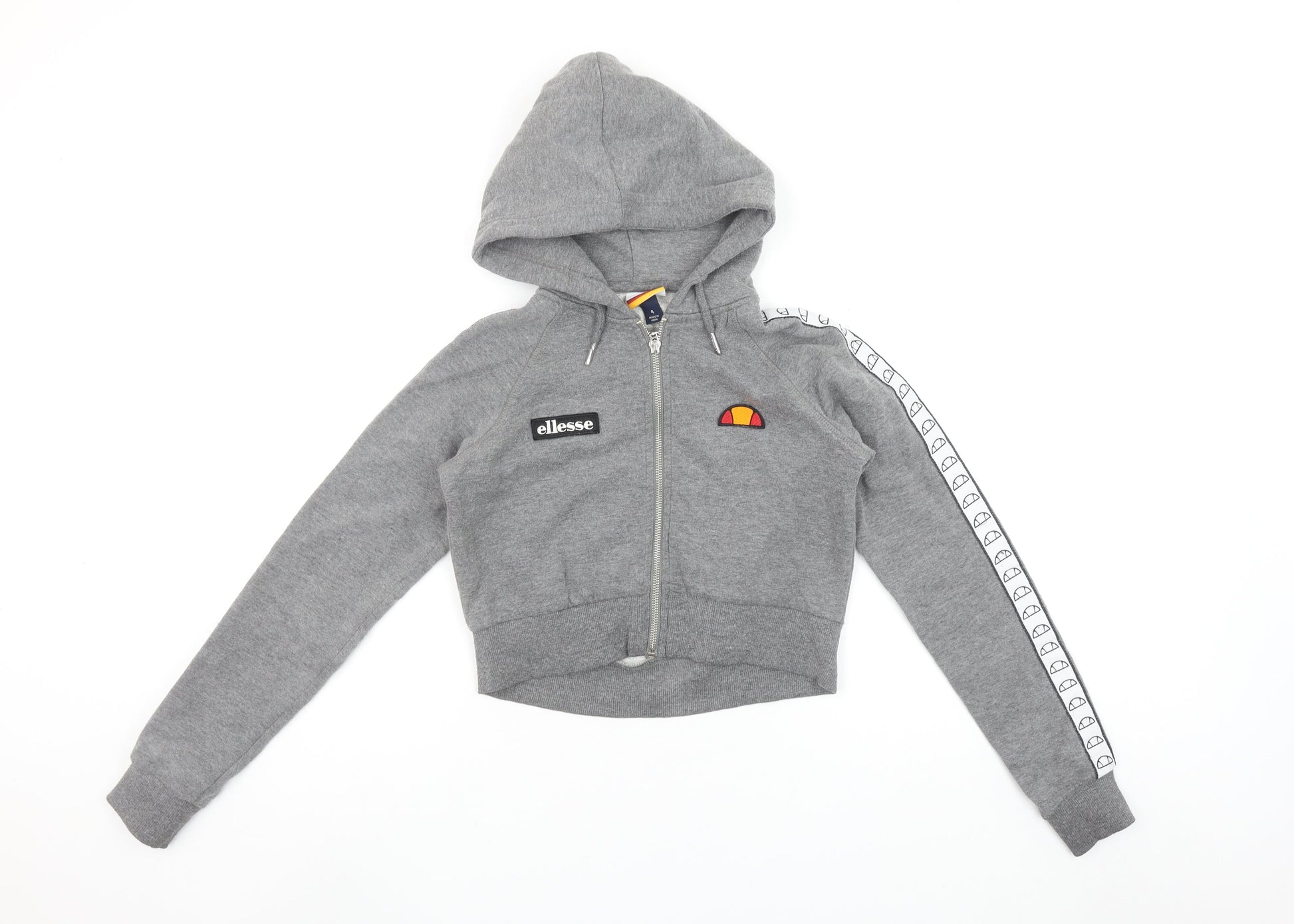 Ellesse Women Grey Full Zip Hoodie Size 4 Cotton Blend Sportswear