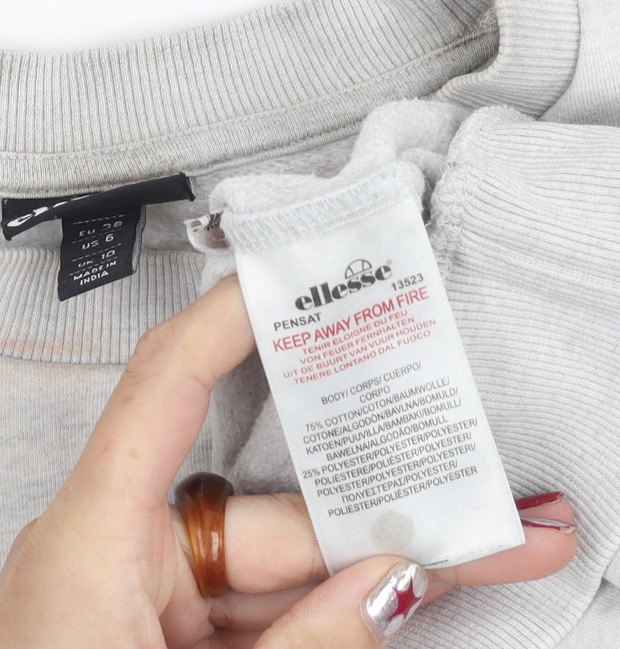 Ellesse Women’s Grey Sweatshirt UK 10 Pullover Crew Neck Cotton Blend