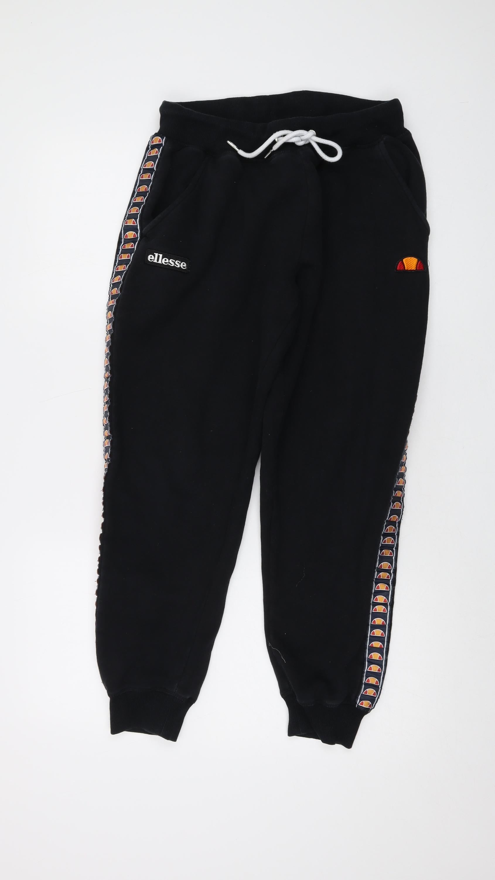 ellesse Womens Black Cotton Trousers Size M L26 in Regular Drawstring
