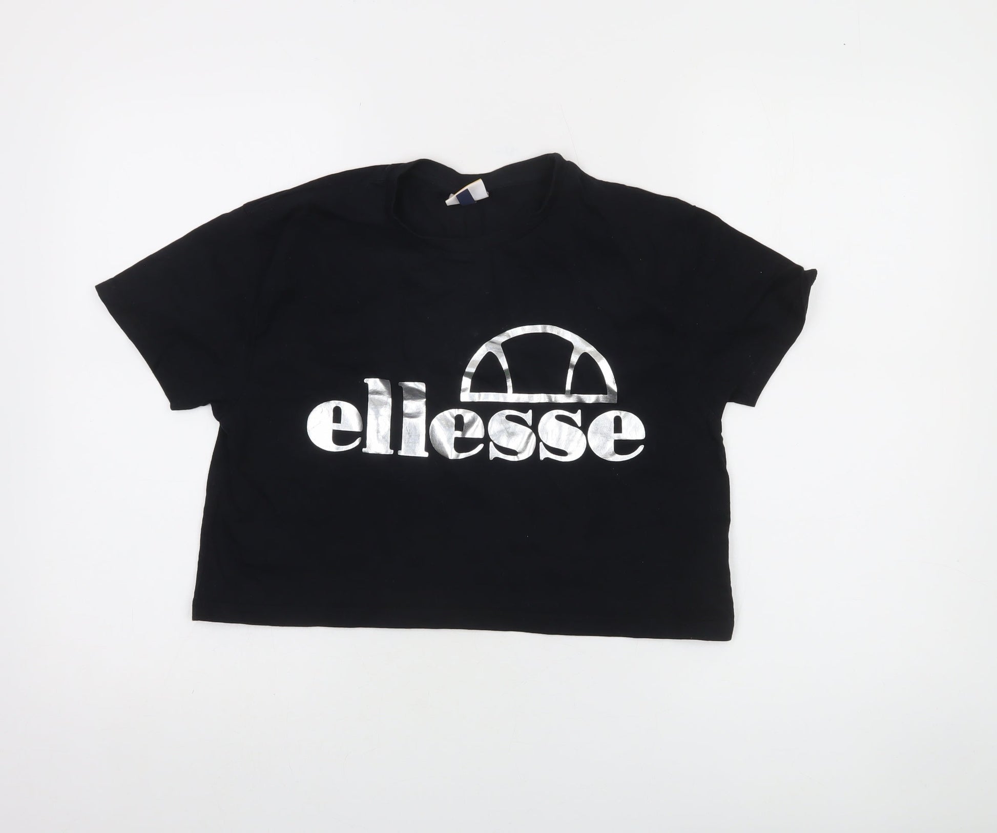 Ellesse Women's Black Cropped T-Shirt UK 10 Retro Sports Style