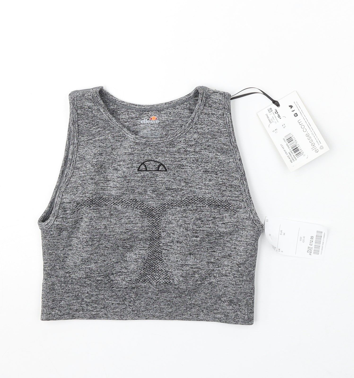 ellesse Womens Grey Polyester Cropped Tank Size 6 Round Neck Pullover
