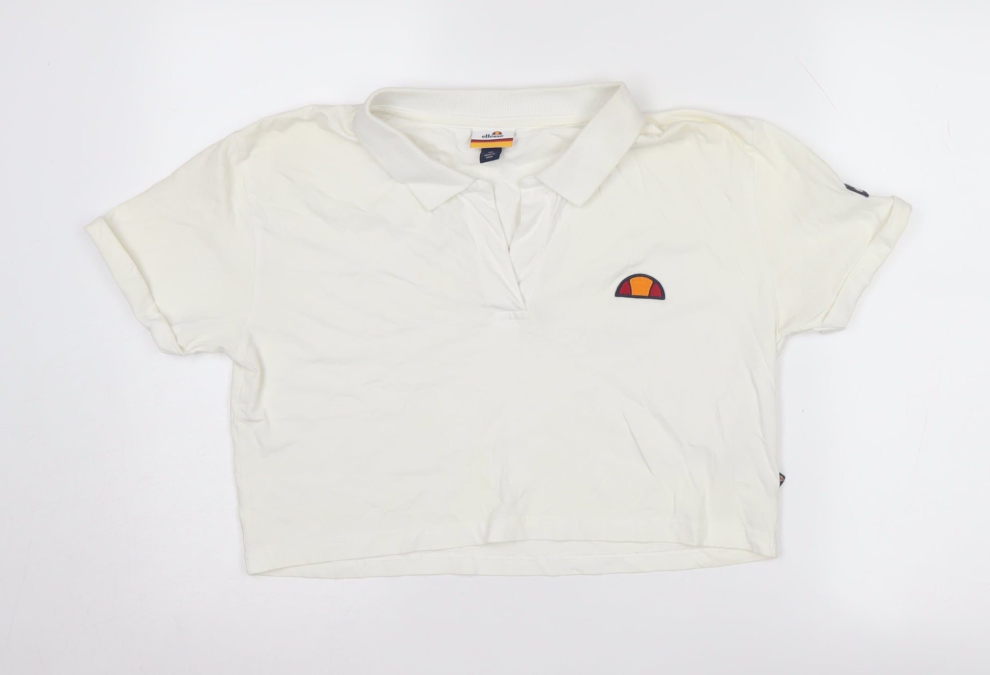 Ellesse Women's White Cropped Polo Shirt Size 10