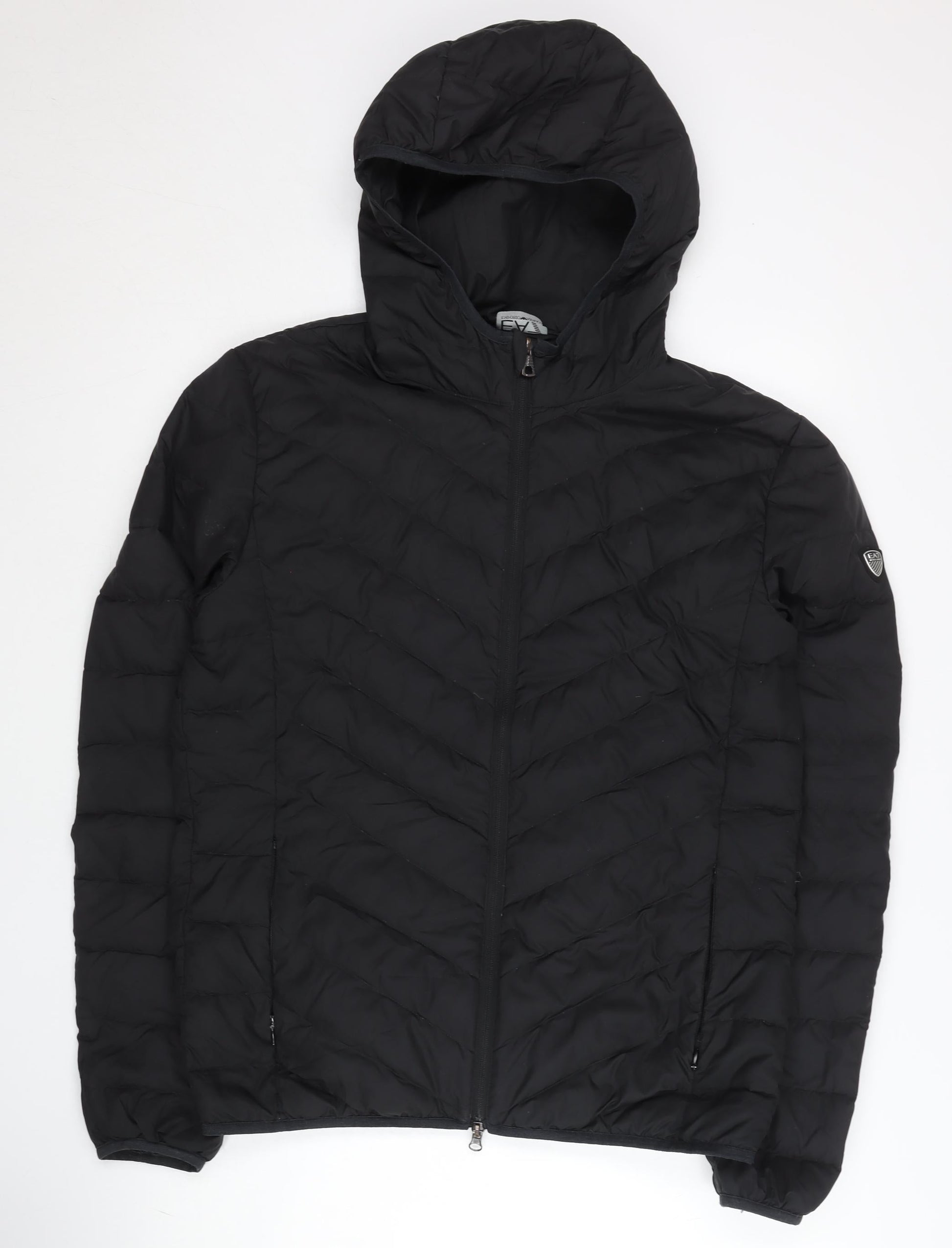 Emporio Armani Men's Black Puffer Jacket, L, Hooded