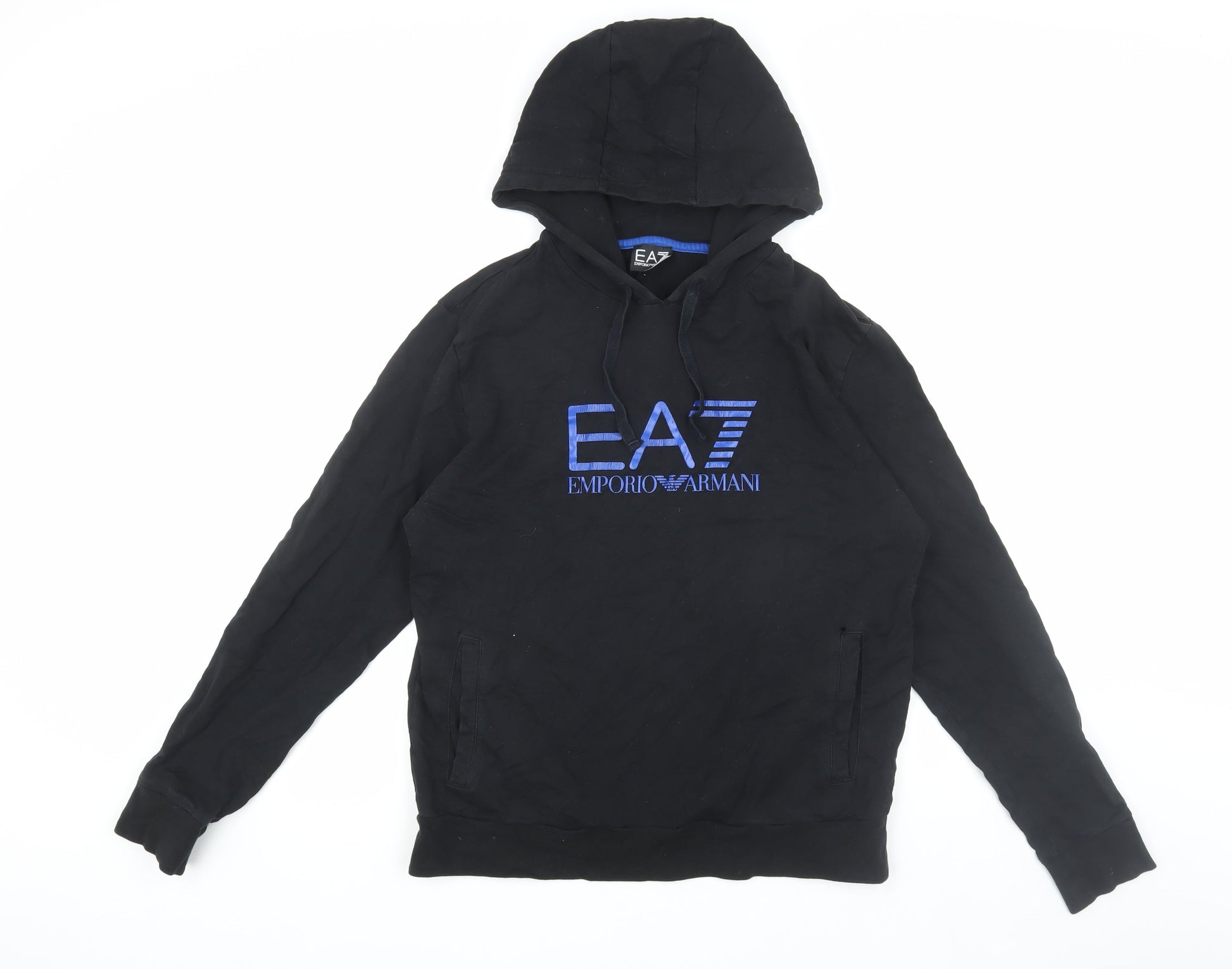 Emporio Armani Men's Black Pullover Hoodie, M, Logo