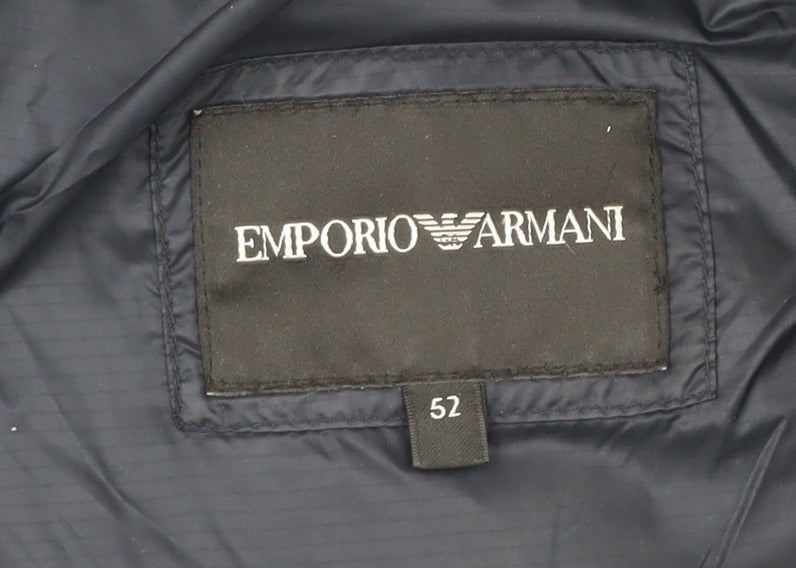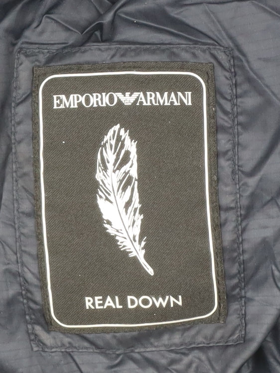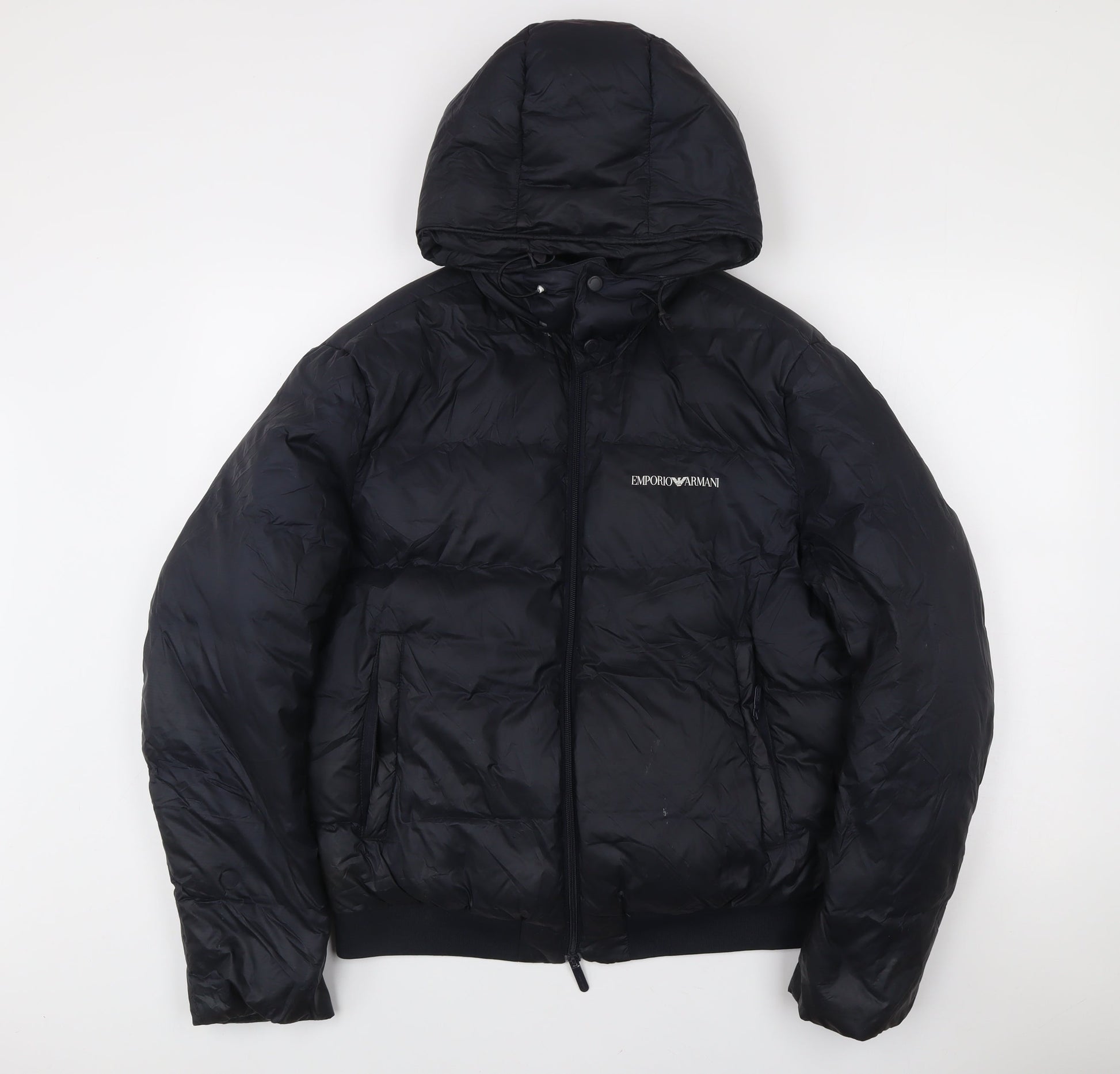 Emporio Armani Men's Black Size 52 Puffer Jacket Hooded Down