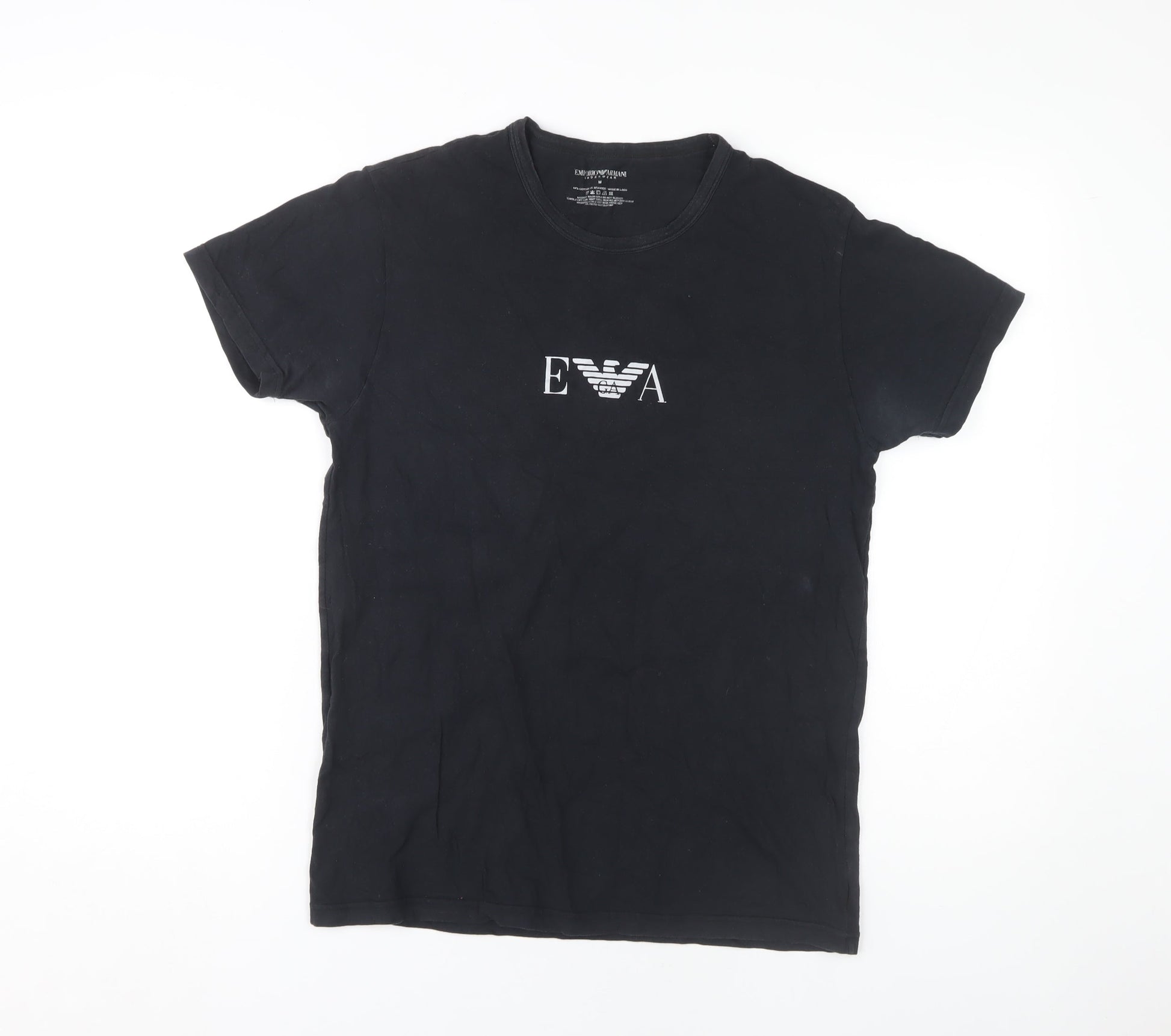 Emporio Armani Men's Black T-Shirt, Medium, Logo Design