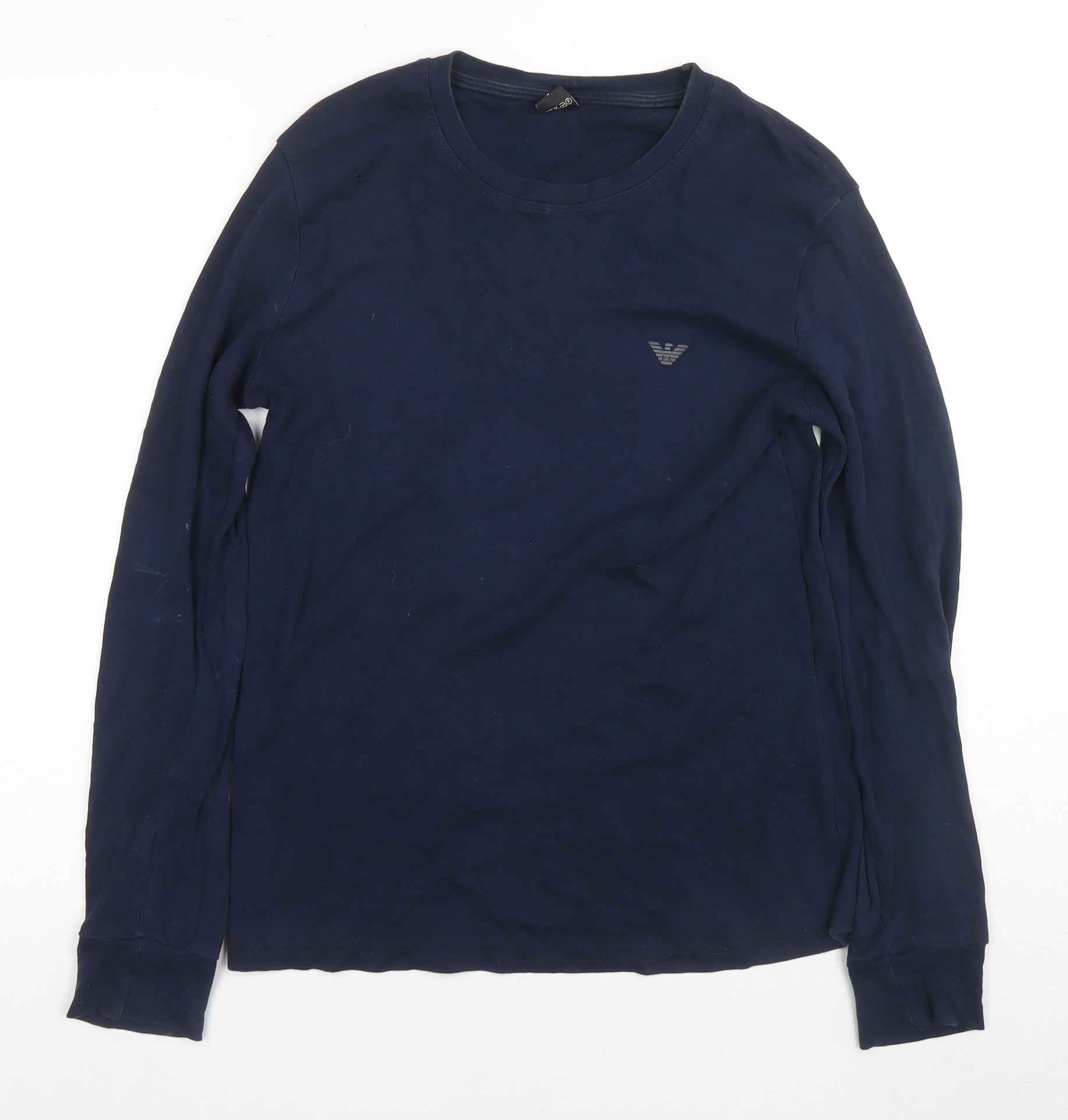 Emporio Armani Men's Blue Long Sleeve Logo T-Shirt, S