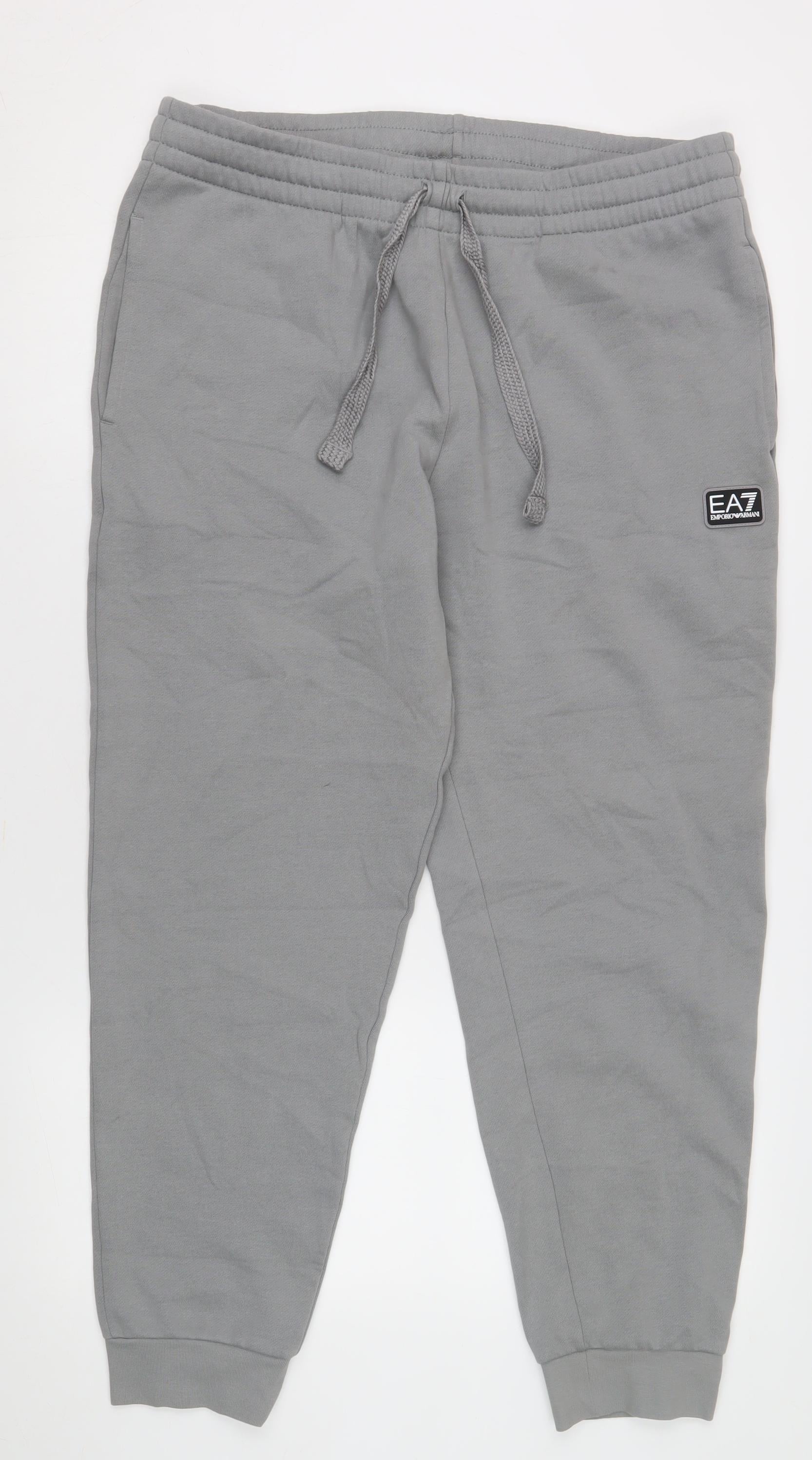 Emporio Armani Men's Grey Jogger Trousers, XL, Relaxed Fit