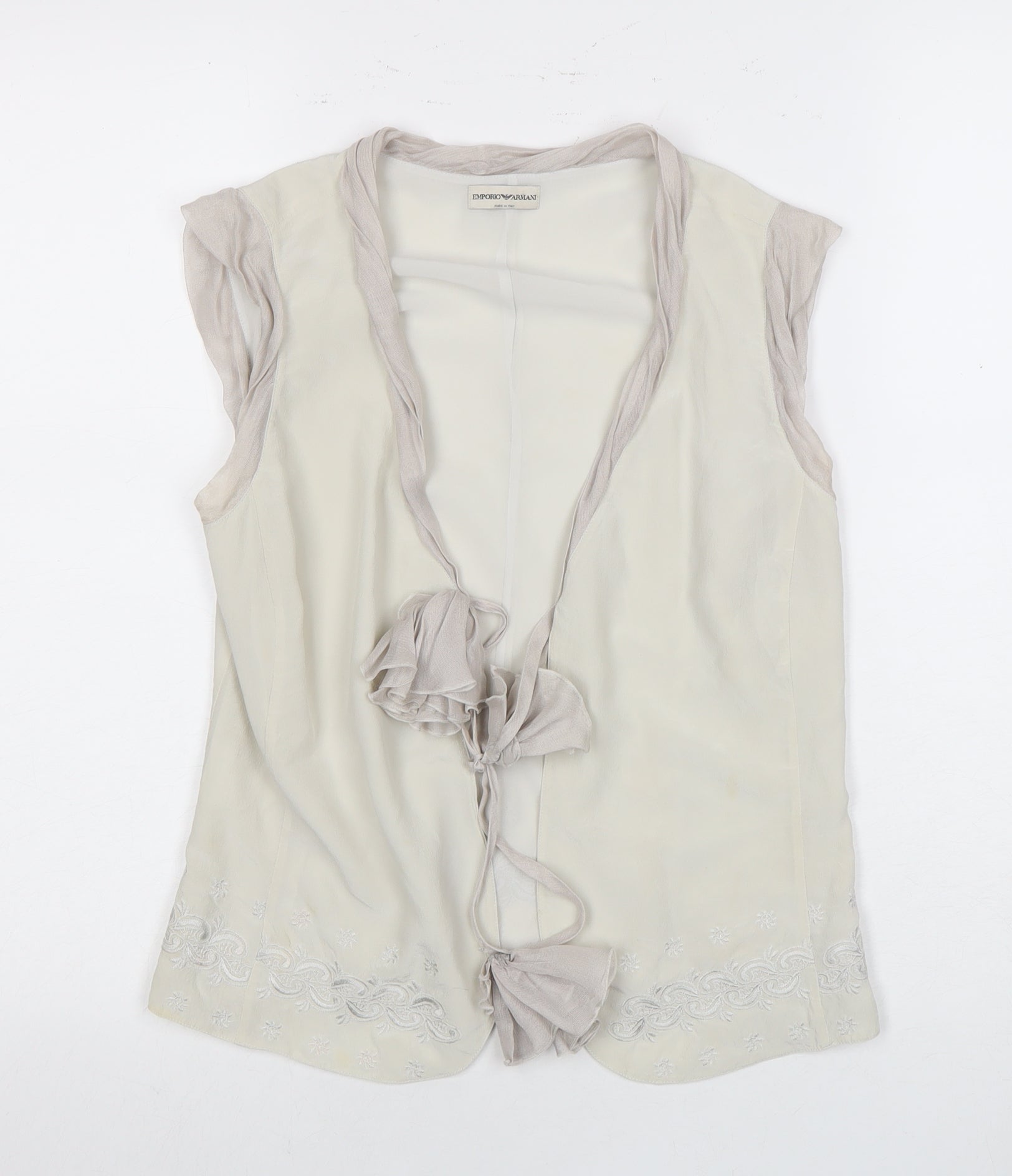 Emporio Armani Women's Ivory Silk Tie Blouse Size 16