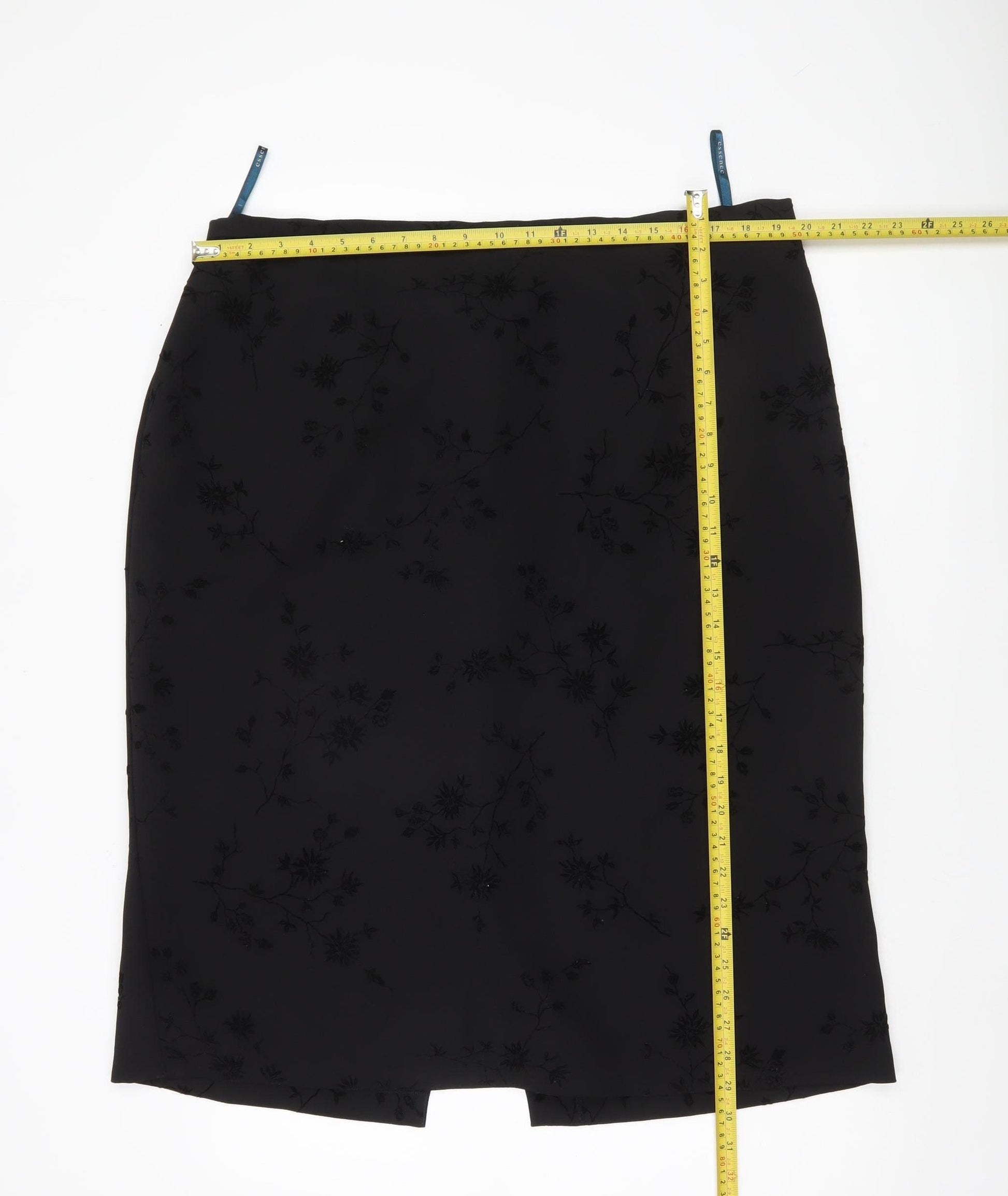 Essence Women’s Black Size 22 Pencil Skirt Floral Lined Knee Length