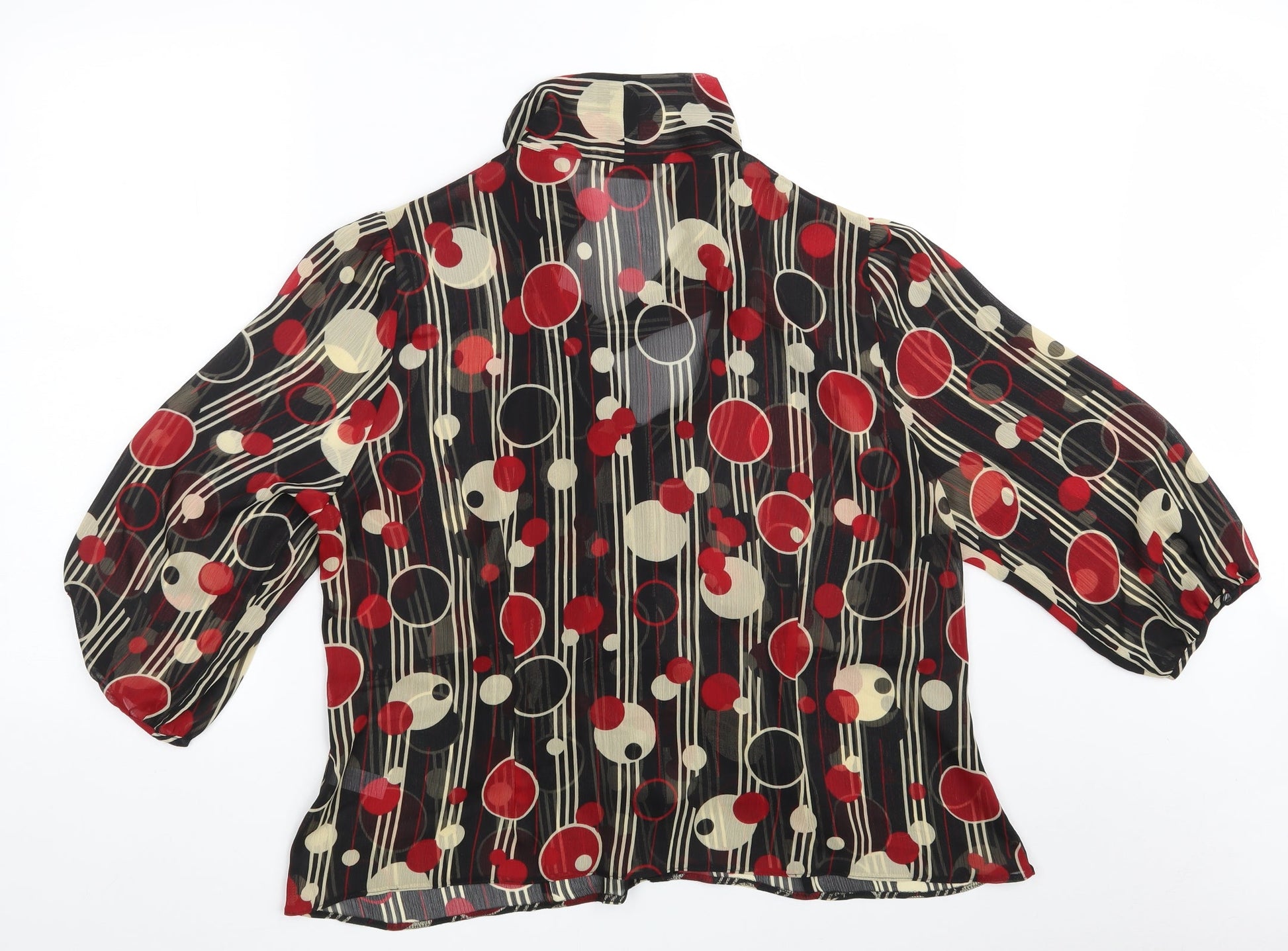 EWM Womens Black Striped Polyester Basic Button-Up Size 22 V-Neck
