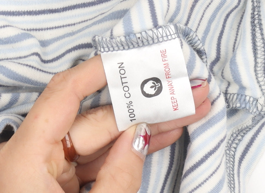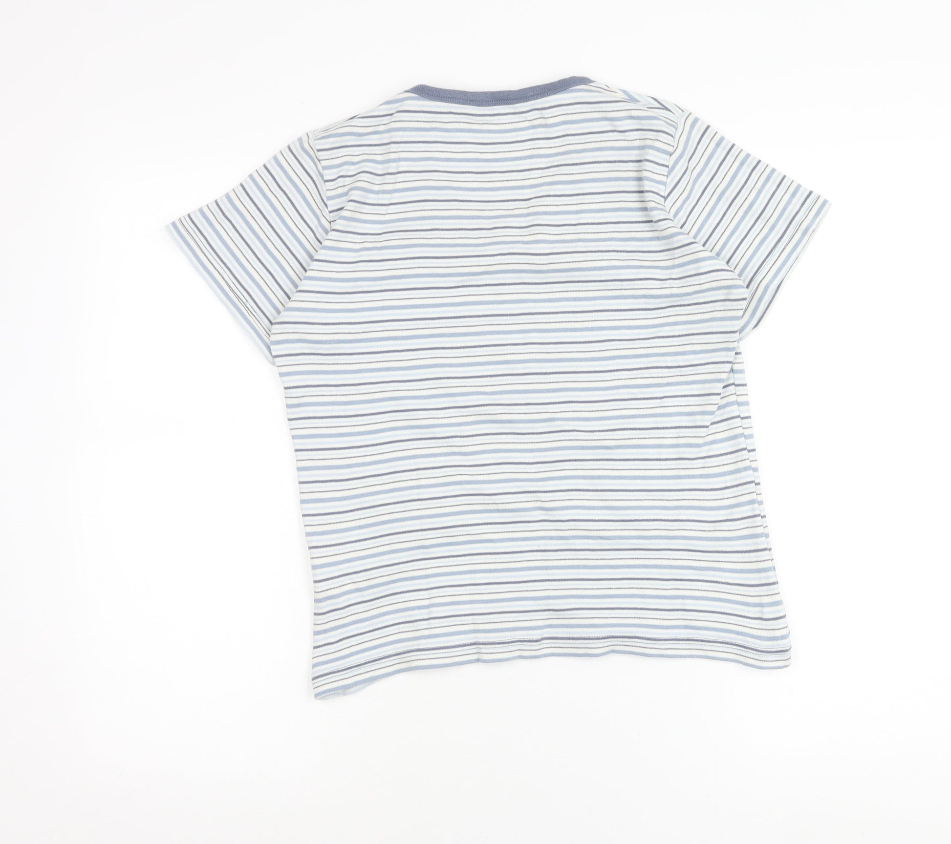 EWM Womens Blue Striped Cotton V-Neck T-Shirt Size 10