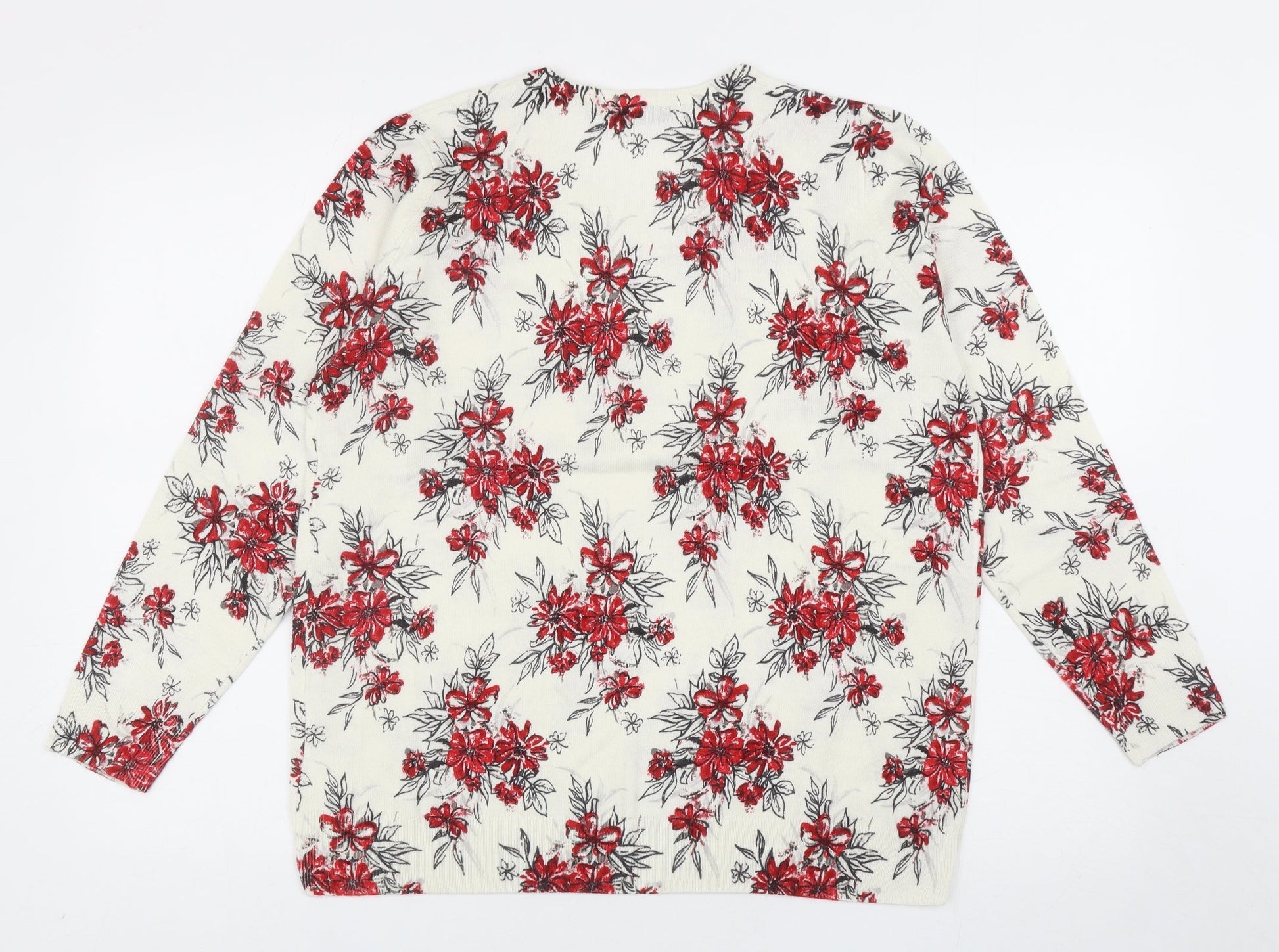 EWM Womens Ivory Scoop Neck Floral Acrylic Pullover Jumper Size M