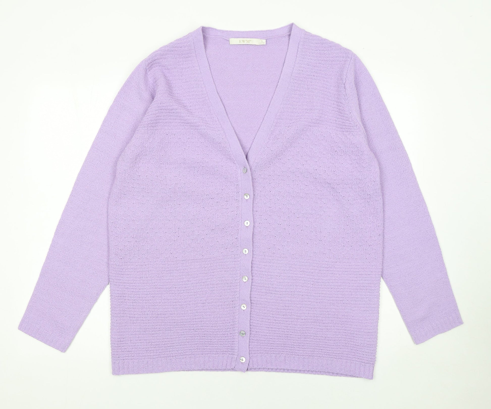 EWM Women's Purple V-Neck Cardigan Size L 18-20 Acrylic Knit