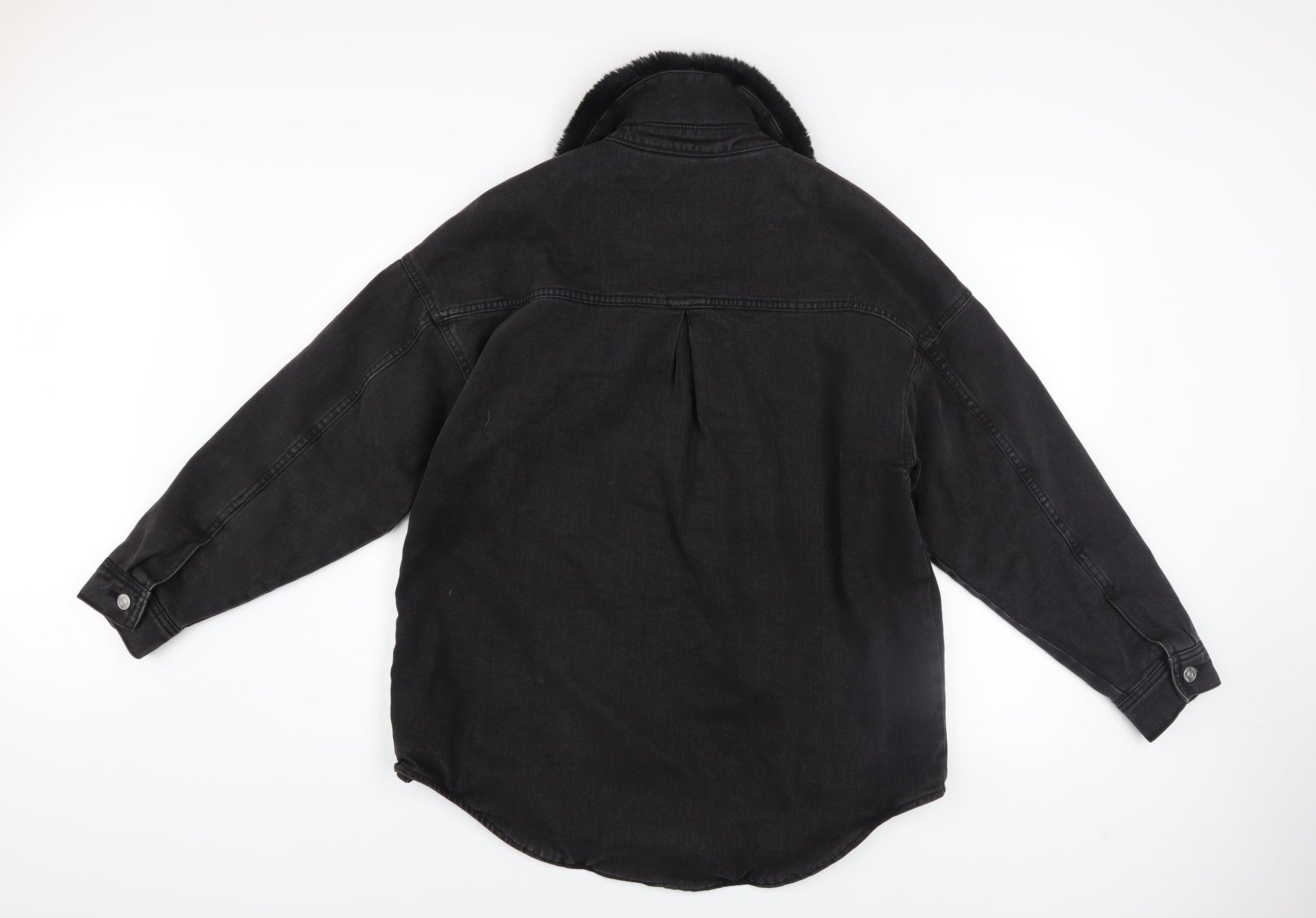 F&F Women's Black Denim Jacket with Faux Fur Collar Size 12 Regular