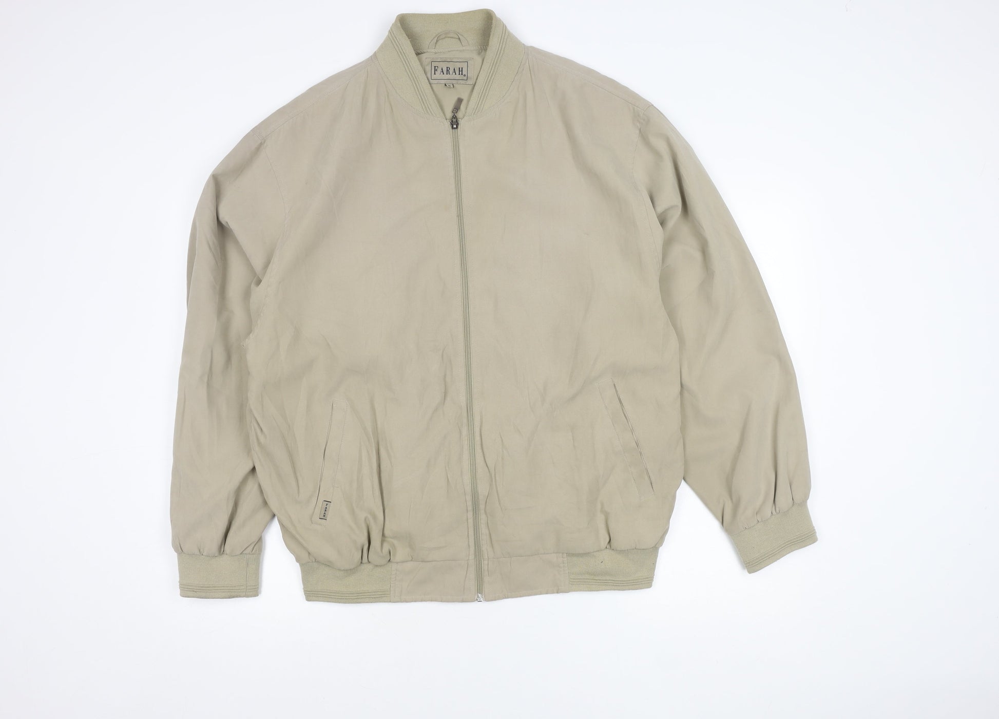 Farah Men’s Beige Bomber Jacket L Polyester Nylon Zip Casual