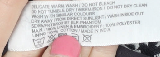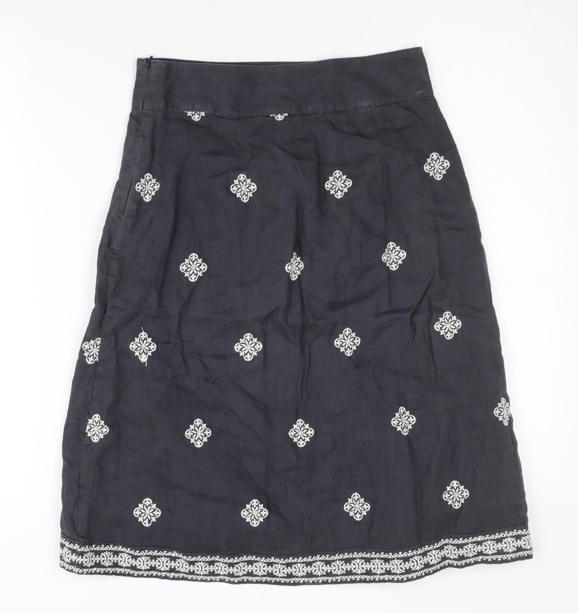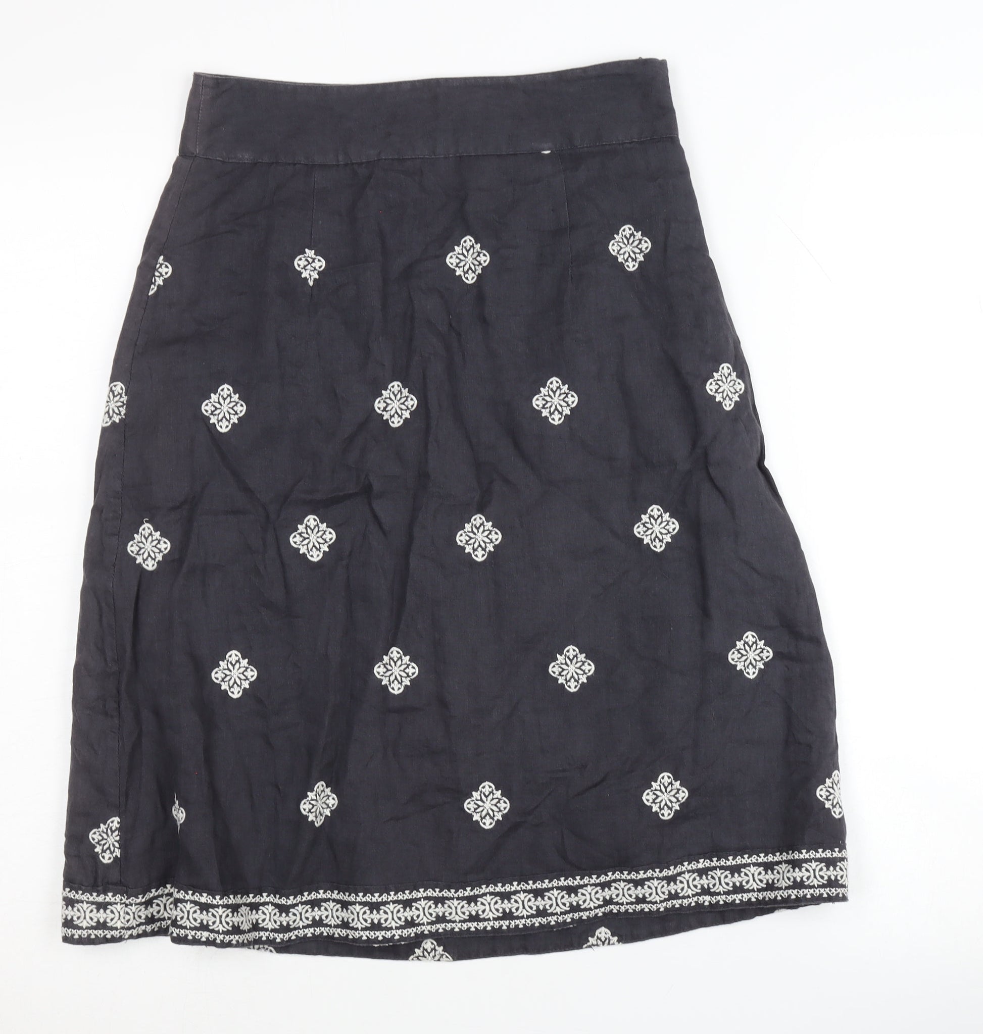 Fat Face Black Linen Embroidered Women's Skirt Size 6