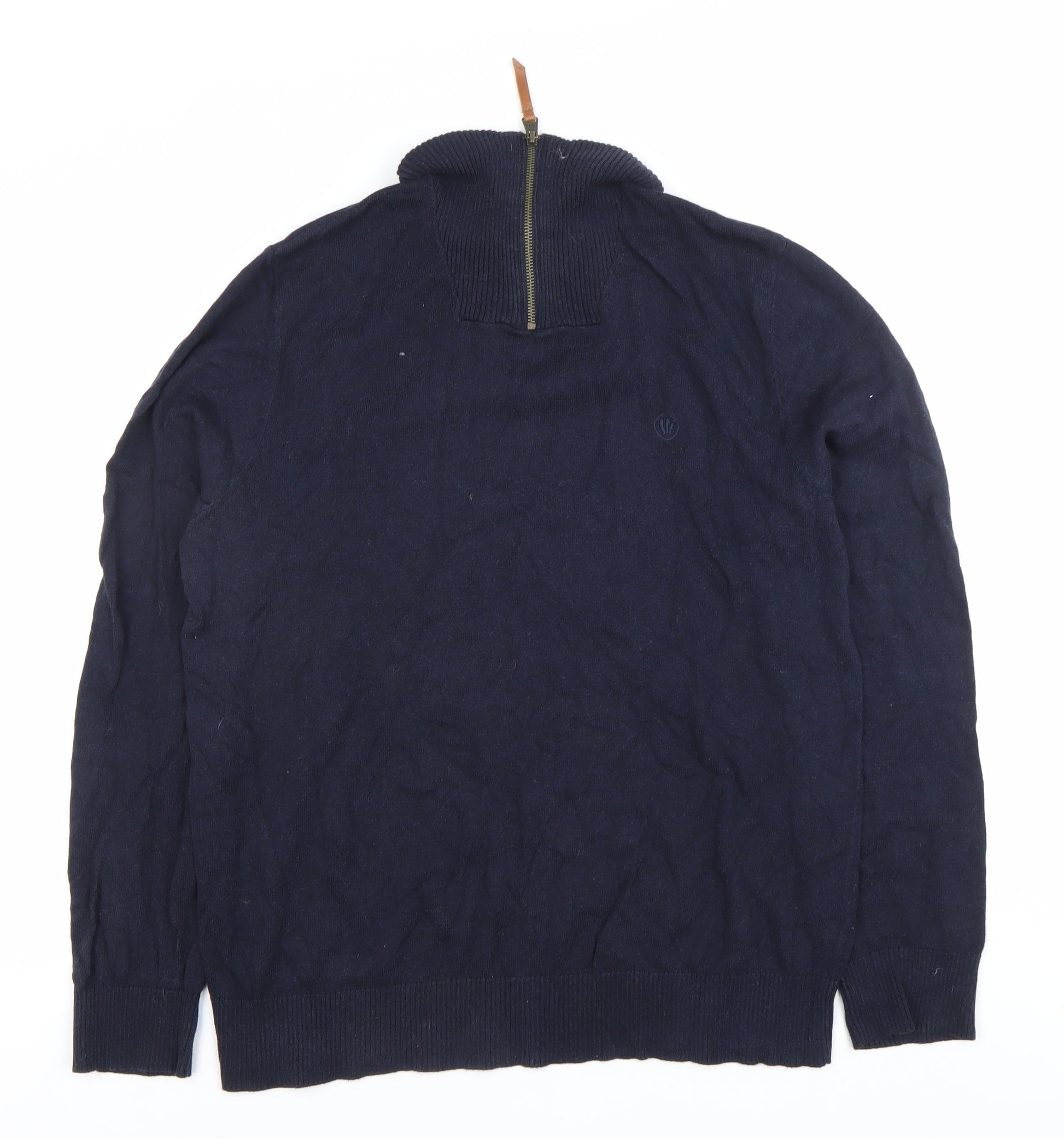 Fat Face Men’s Blue Wool Blend Full Zip High Neck Jumper Size L