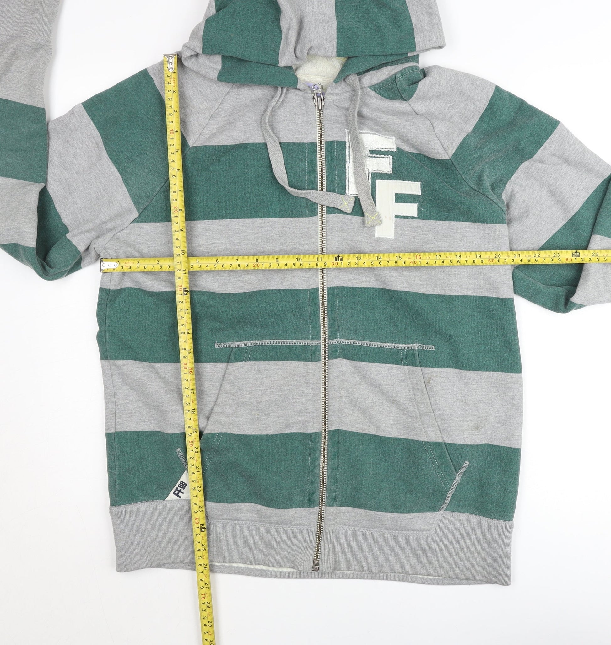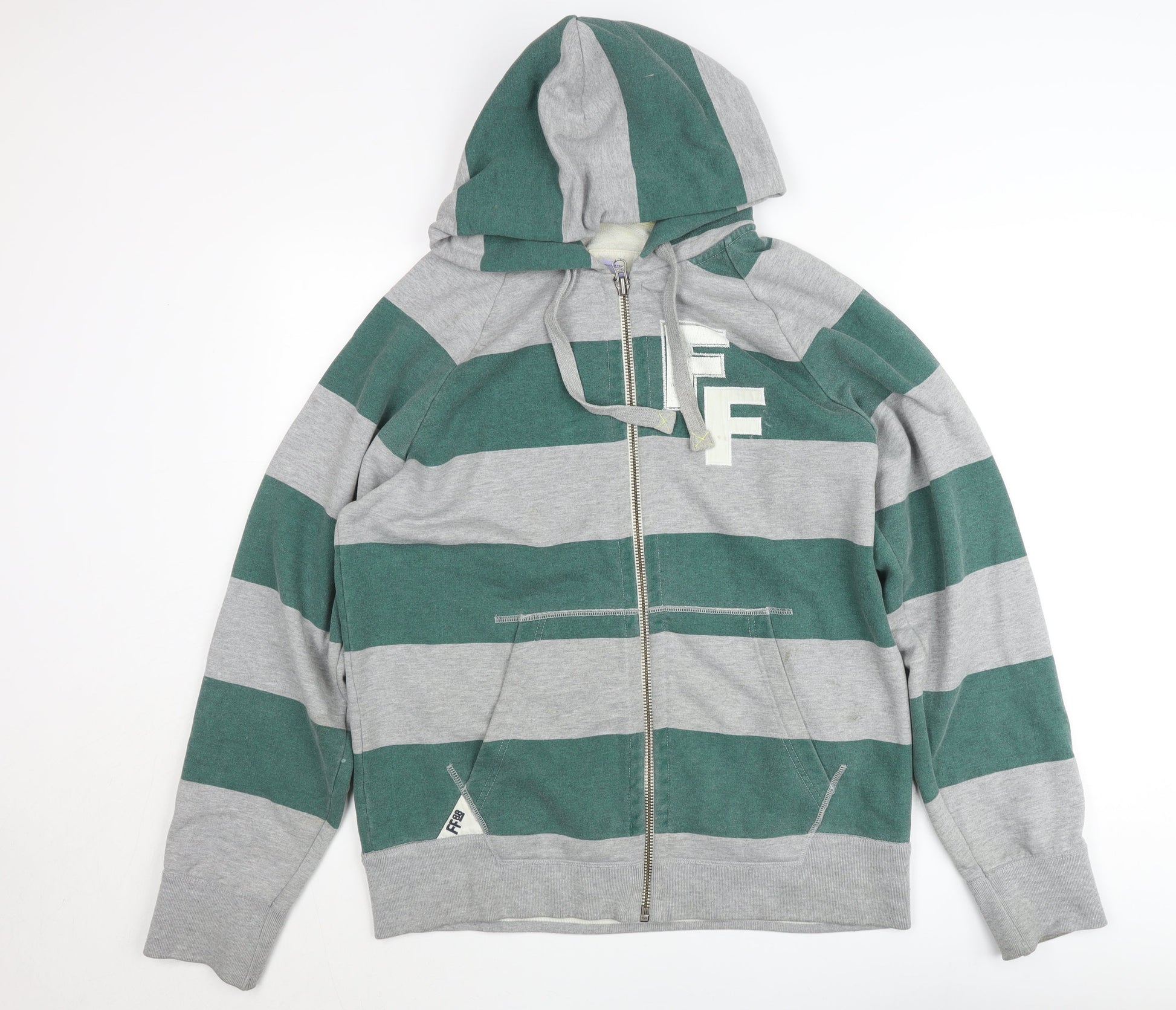 Fat Face Men’s Green Grey Striped Full Zip Hoodie Jumper L