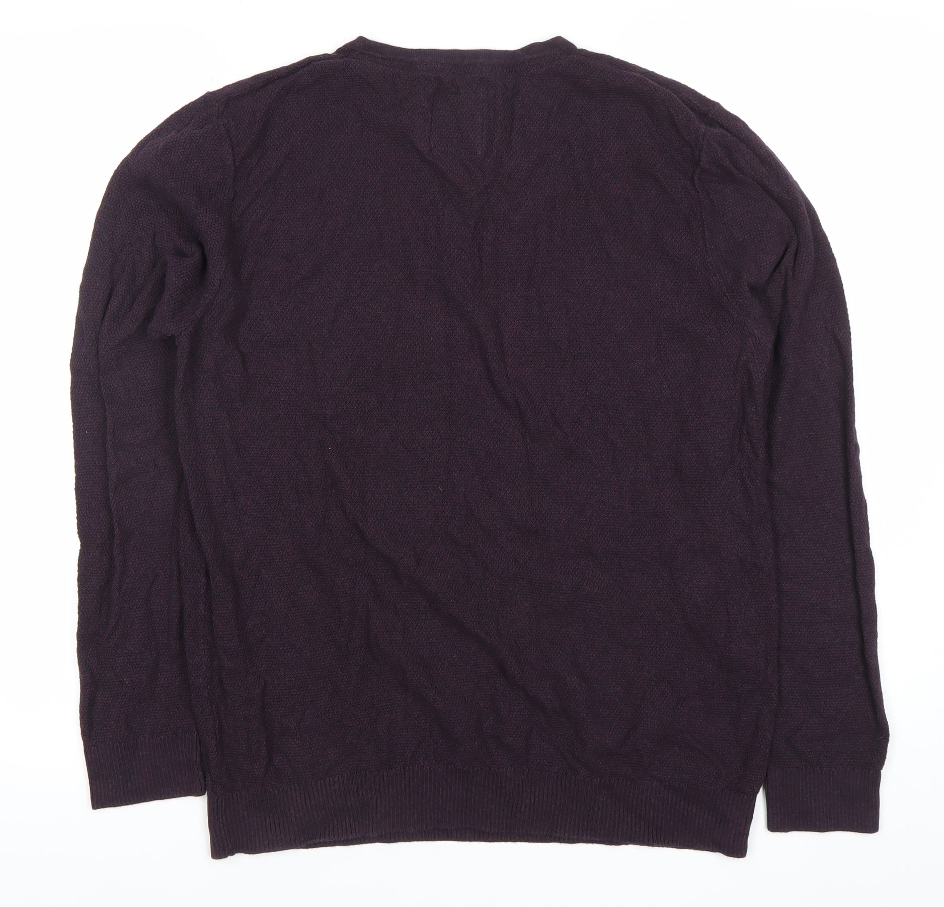 Fat Face Men’s Purple Cotton Blend V-Neck Jumper Medium