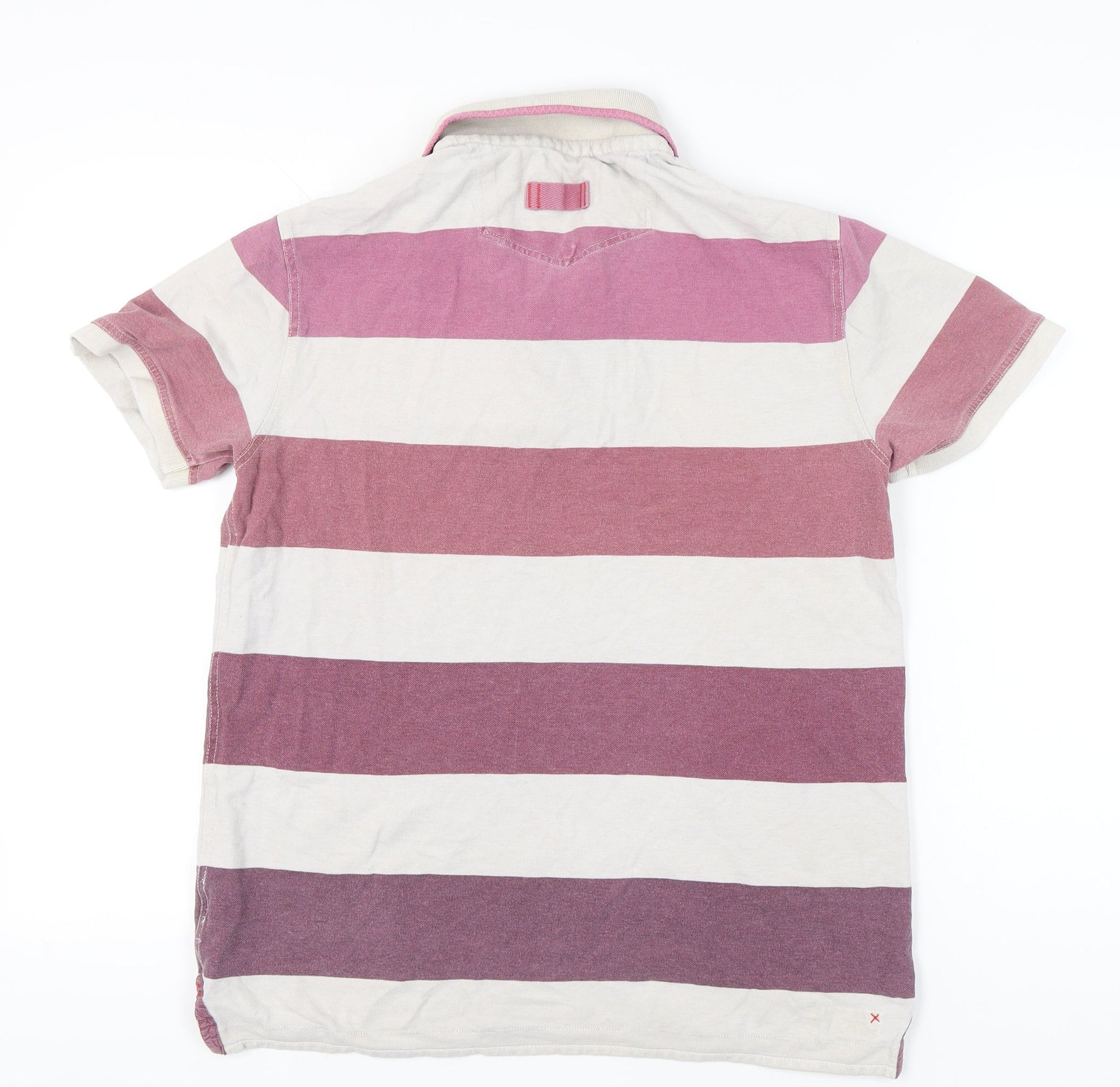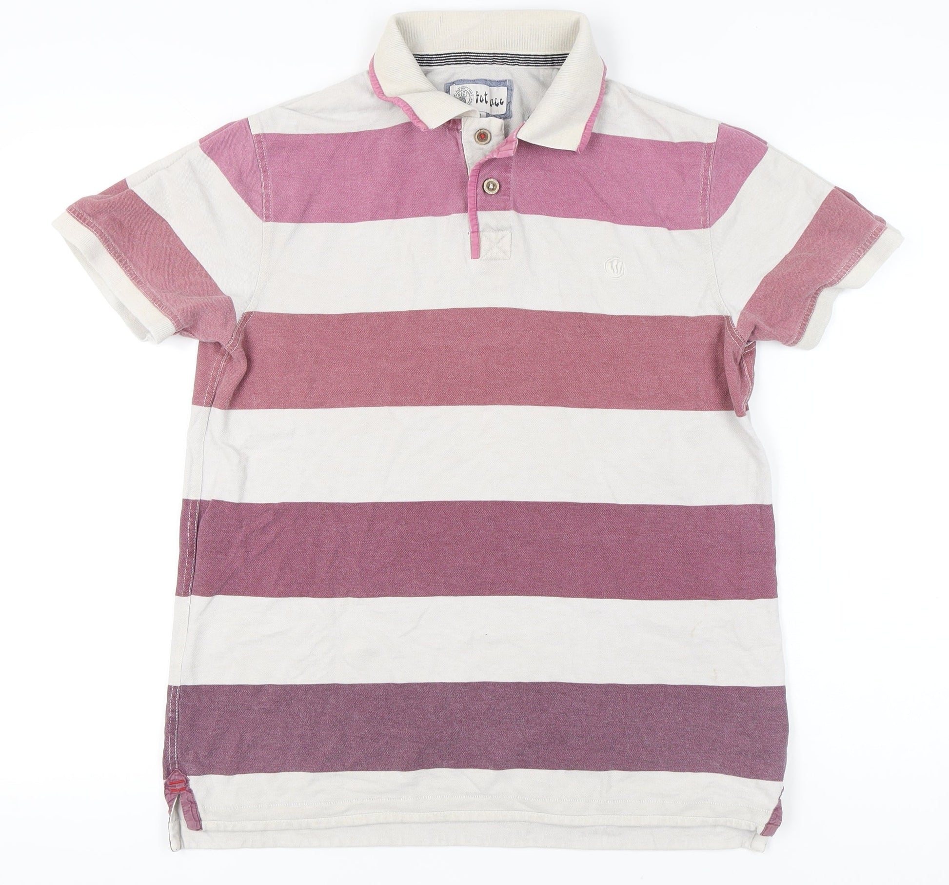 Fat Face Men’s Red White Striped Polo Shirt Cotton M Regular