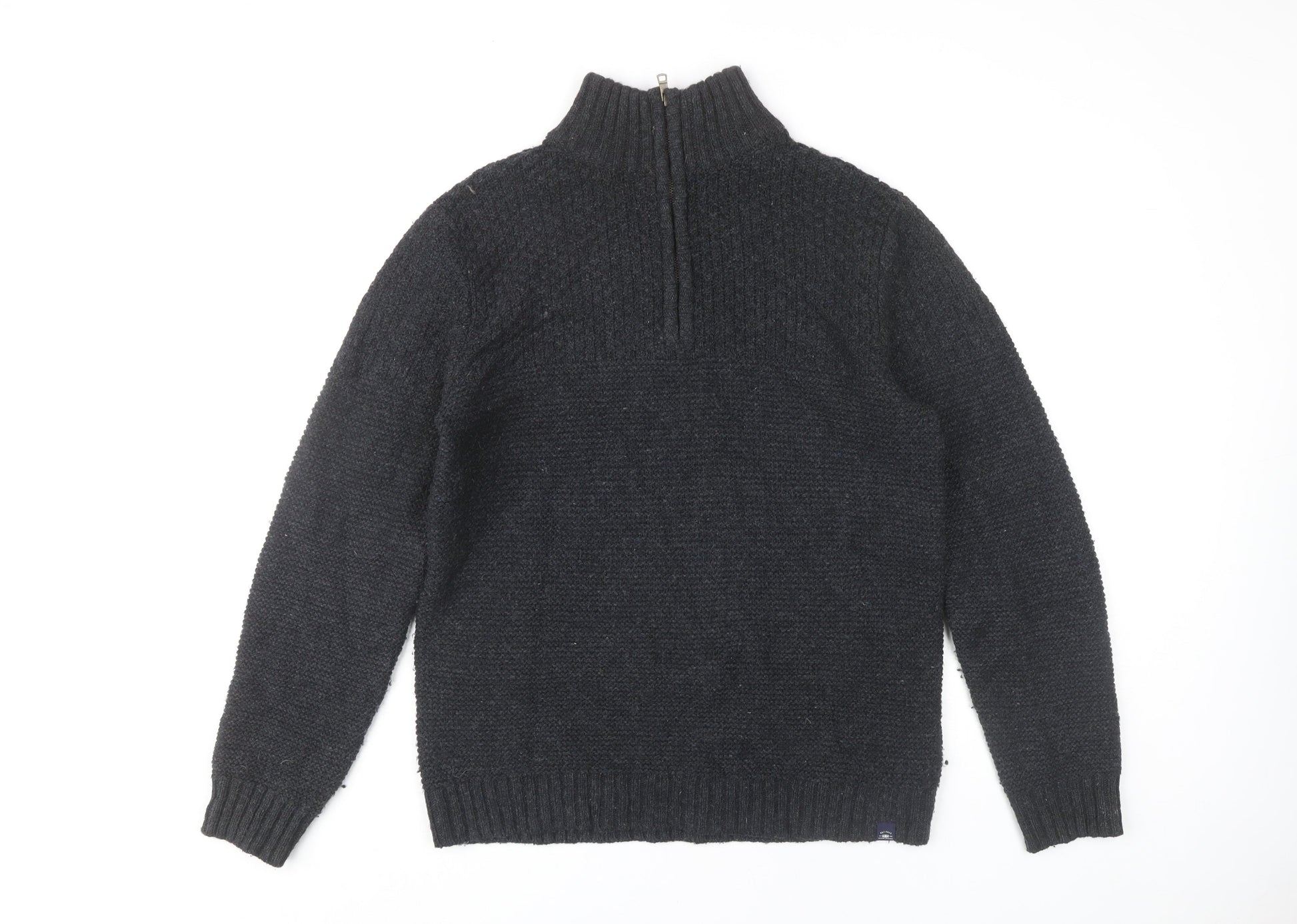 Fat Face Men's Black S Full Zip Chunky-Knit Jumper