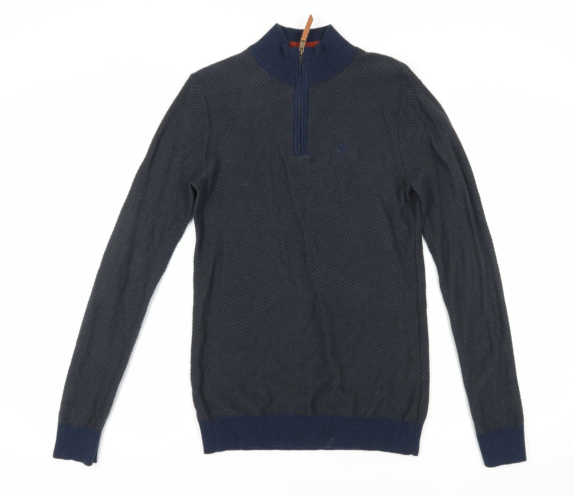 Fat Face Men's Blue XS Full Zip Waffle-Knit Jumper