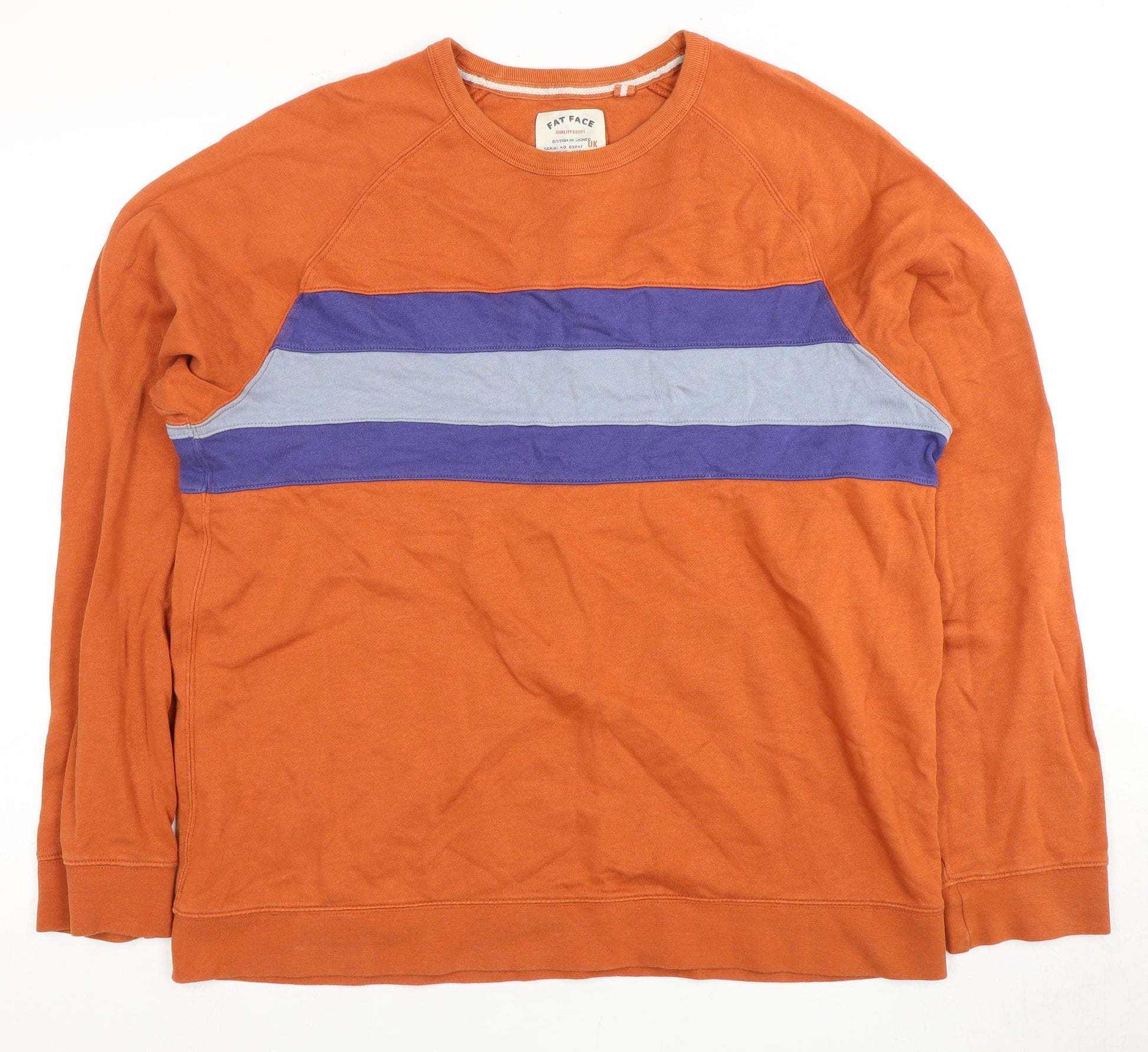 Fat Face Men's Orange Striped Crew Neck Sweatshirt L
