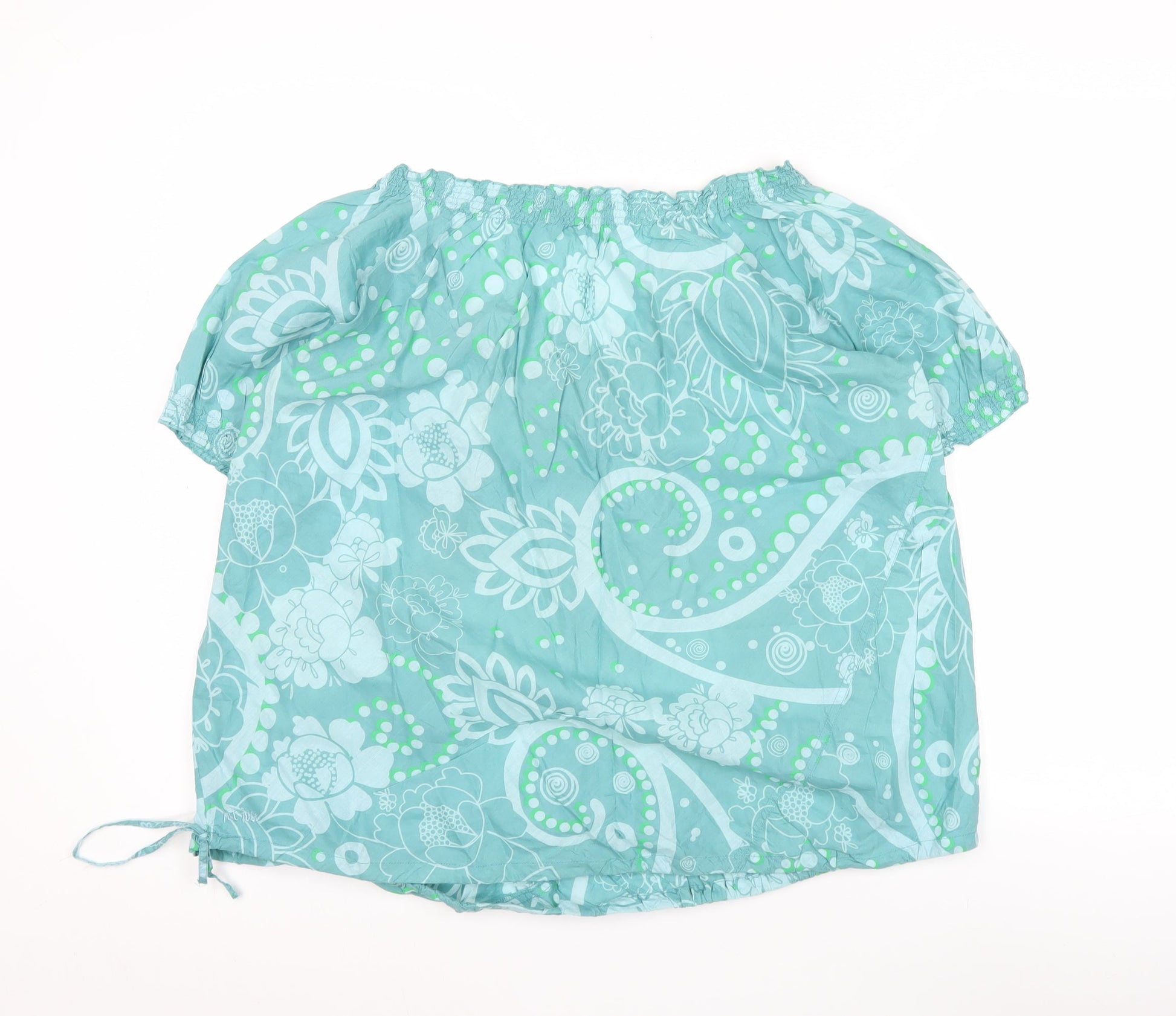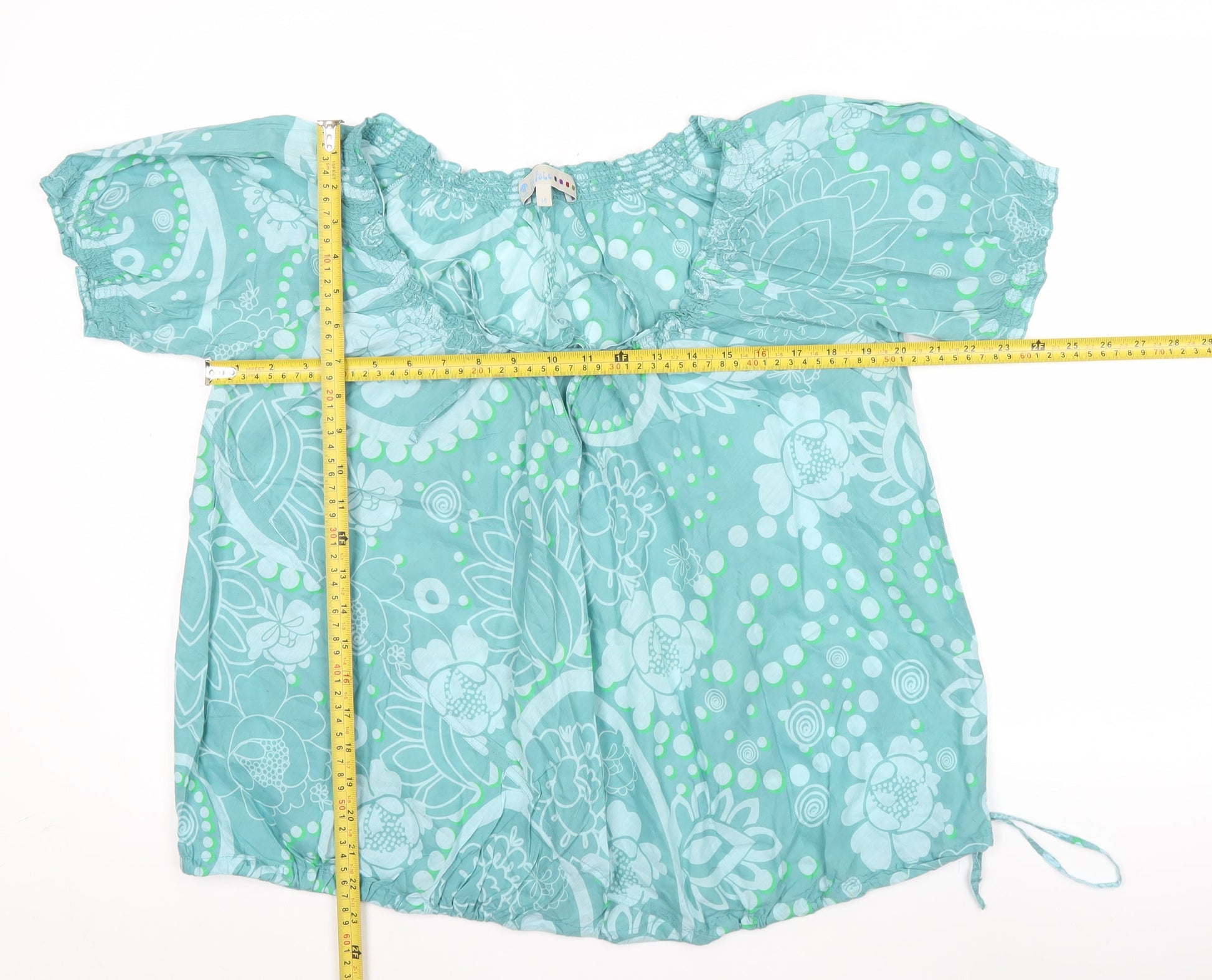Fat Face Women Blue Floral Cotton Peasant Blouse Size 14