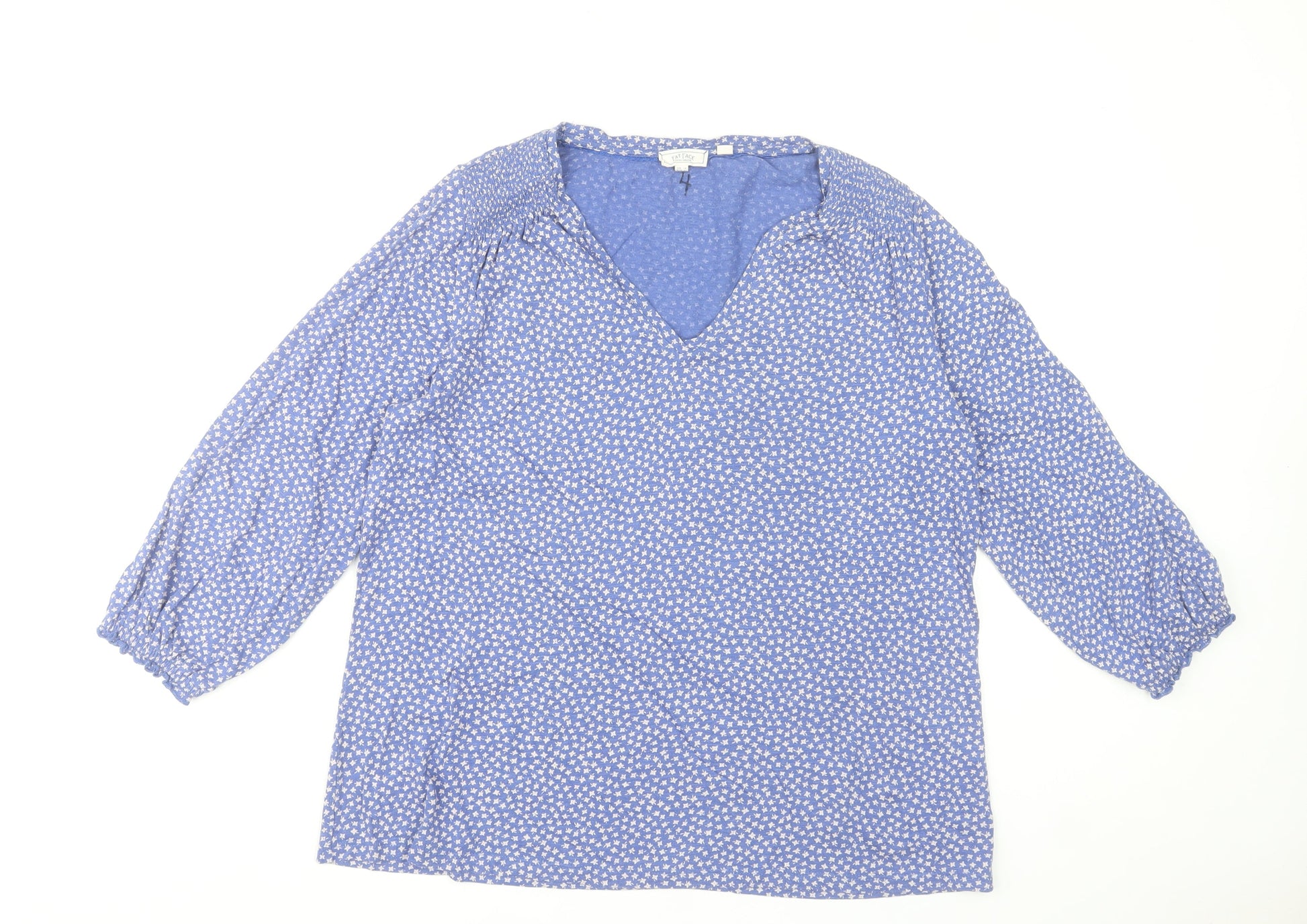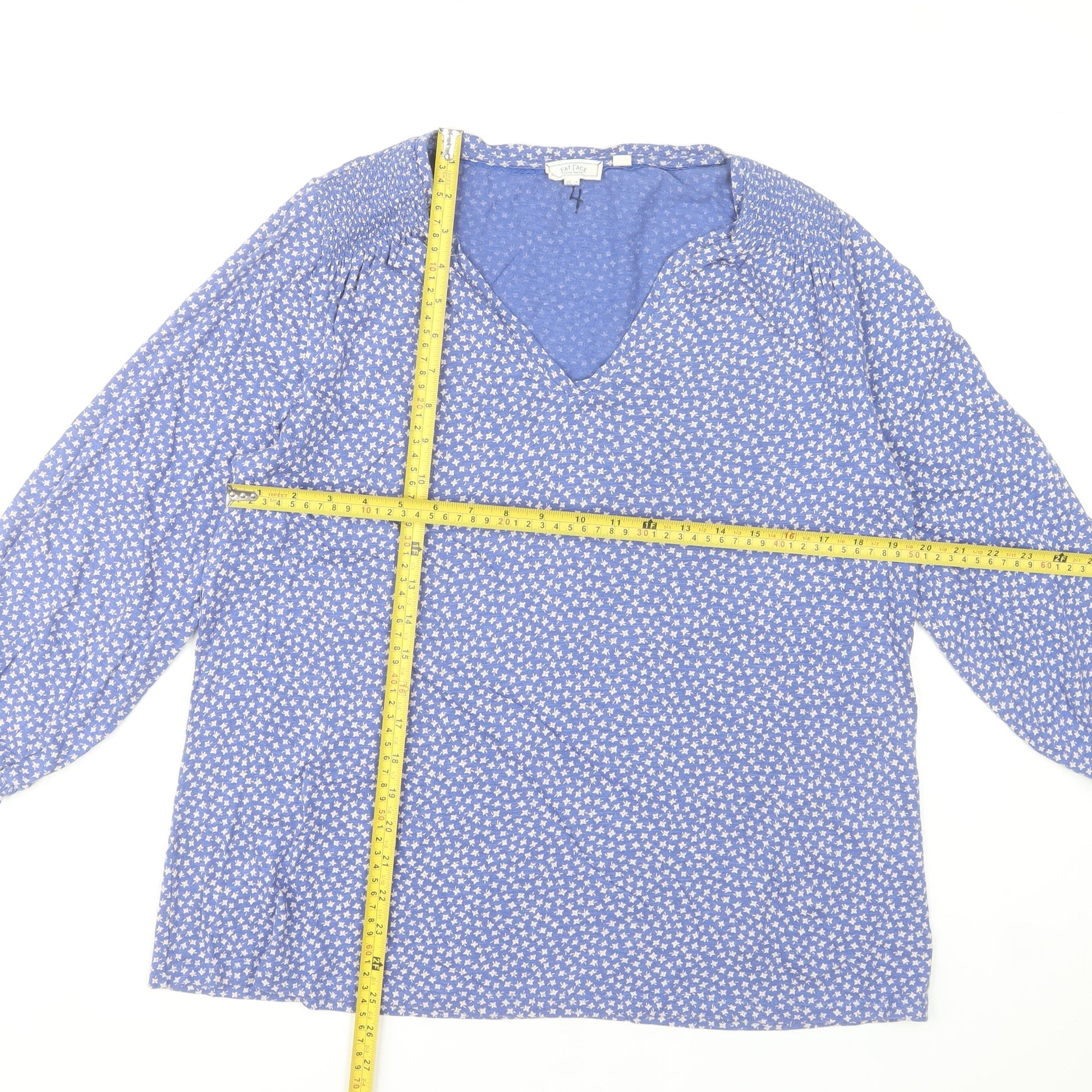 Fat Face Women Blue Floral V-Neck Tunic Blouse UK 14