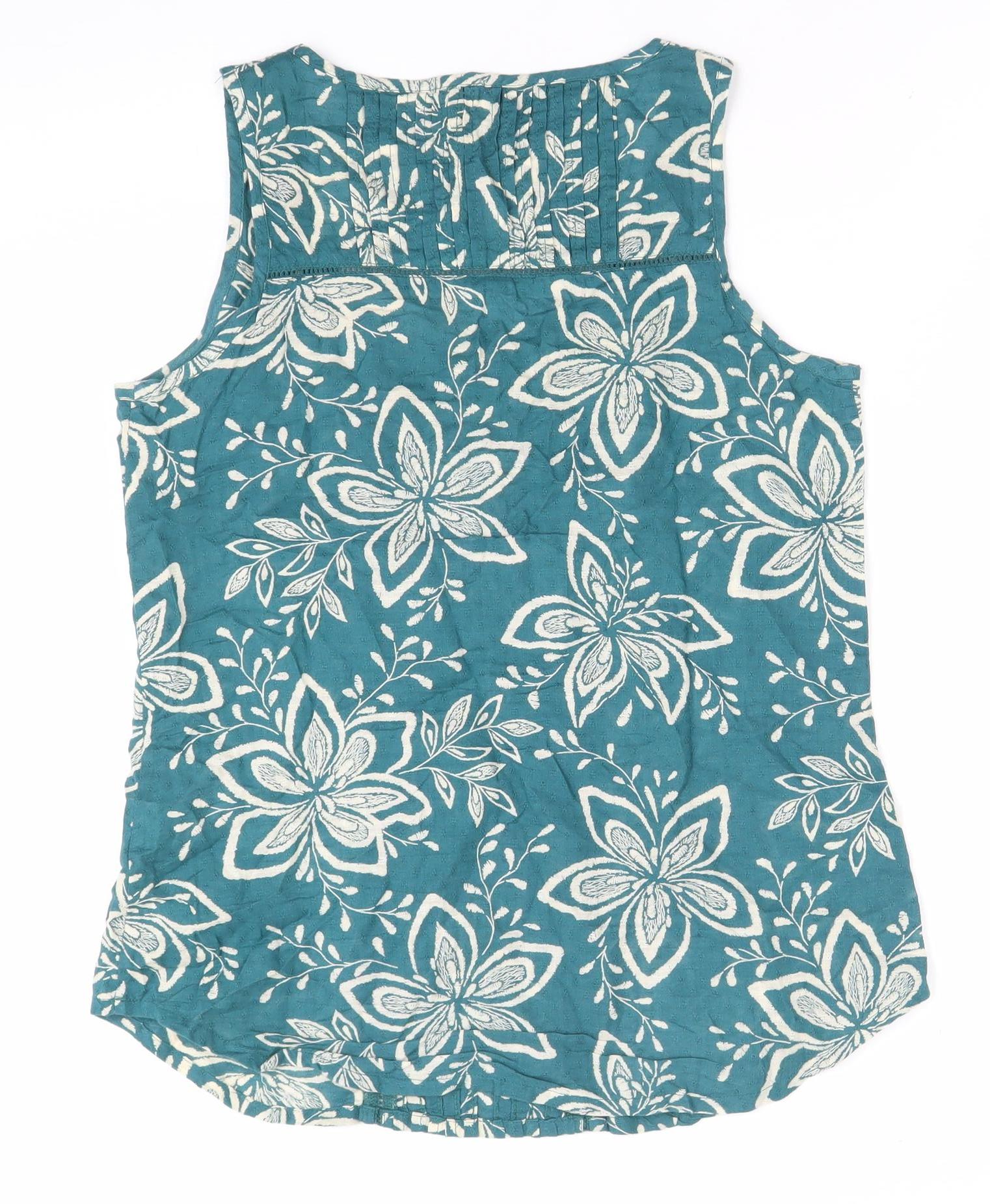 Fat Face Women Green Floral Blouse Size 8 Sleeveless Tunic Cotton