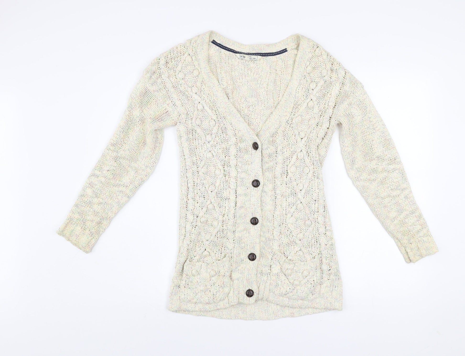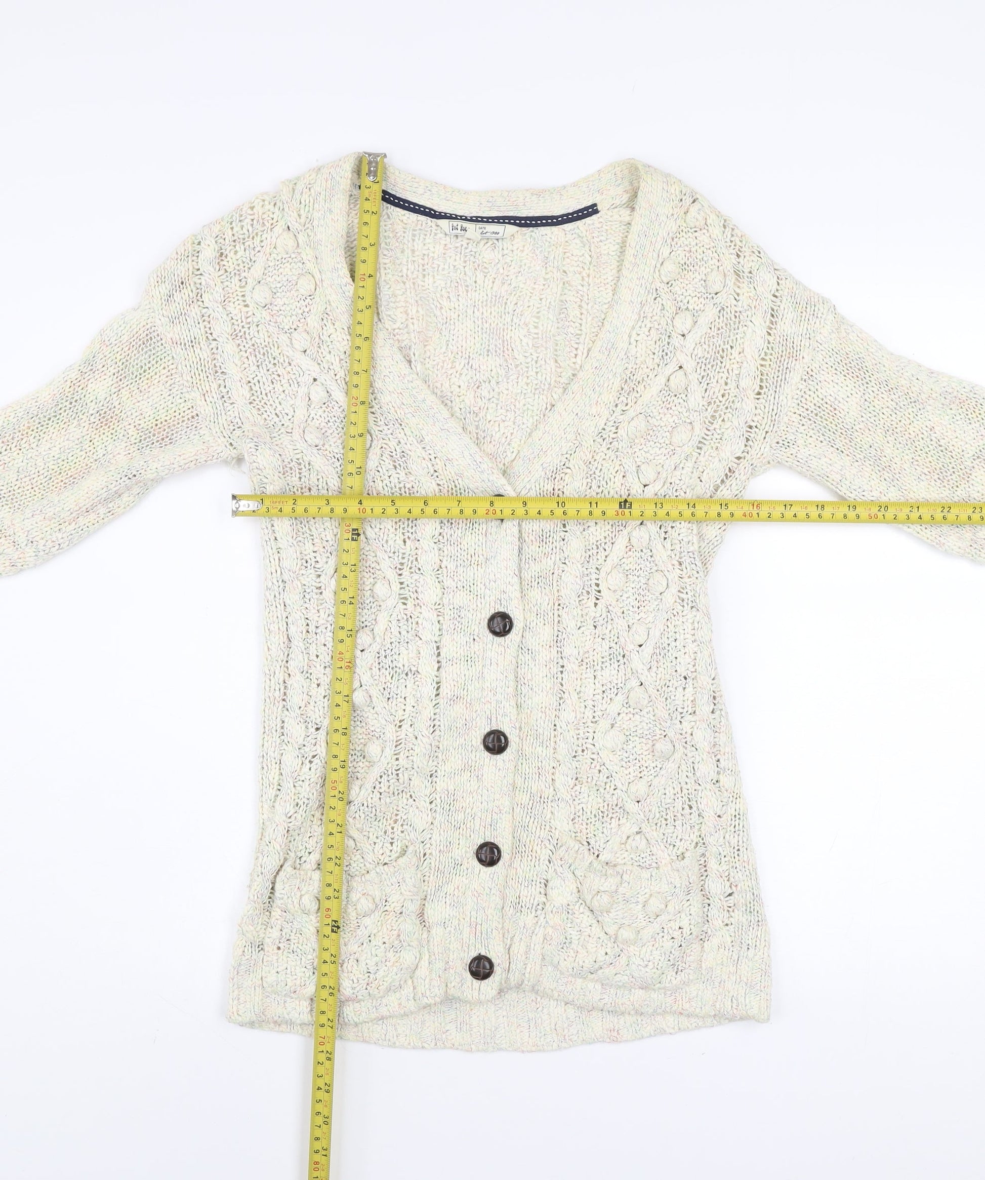 Fat Face Women Ivory Cable-Knit Button Cardigan Size 8