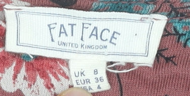 Fat Face Women Red Floral Shift Dress Size 8 Viscose Casual 3/4 Sleeve