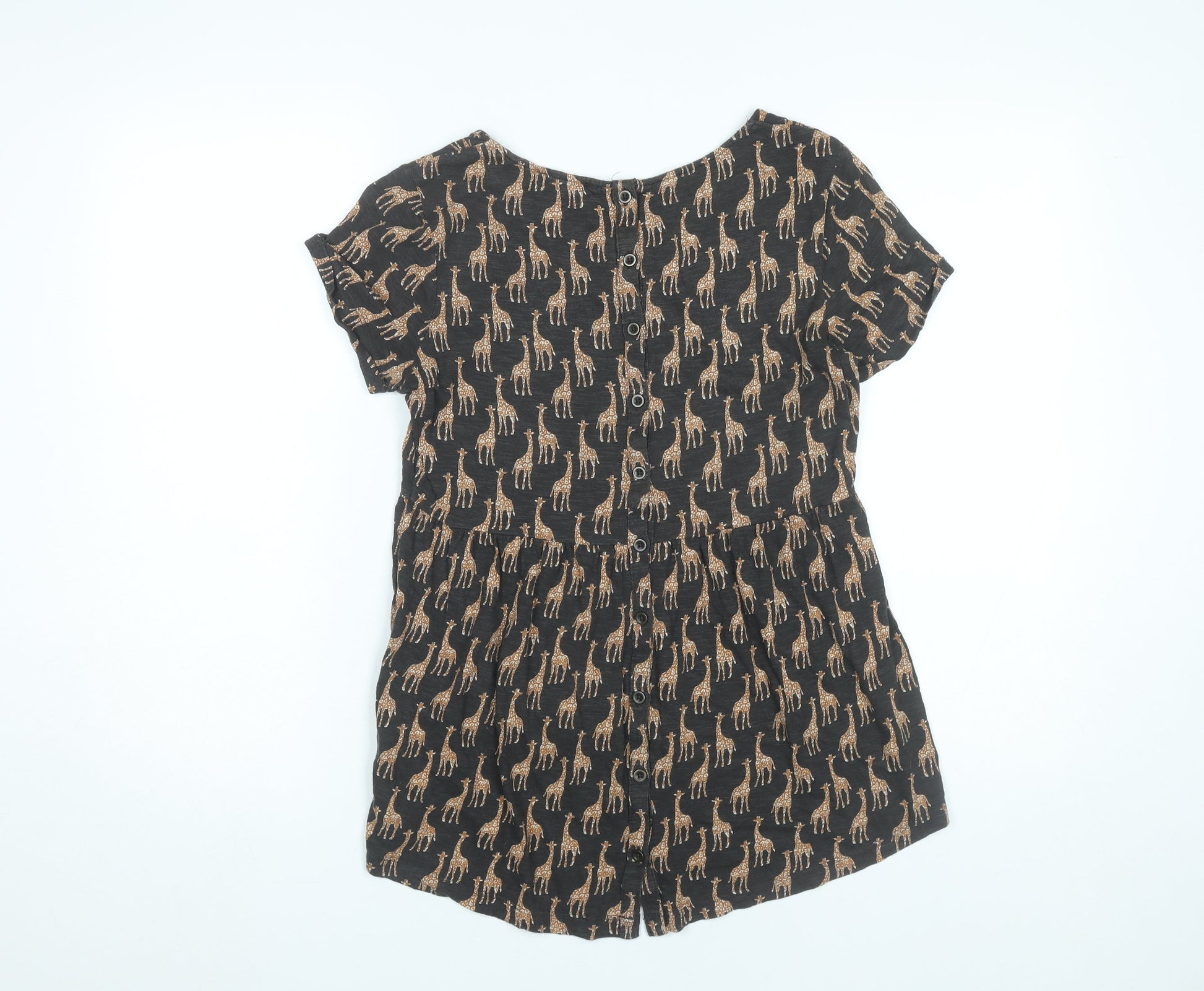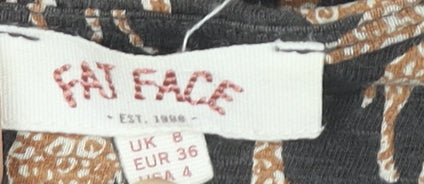 Fat Face Women’s Black Animal Print Blouse UK 8 Short Sleeve