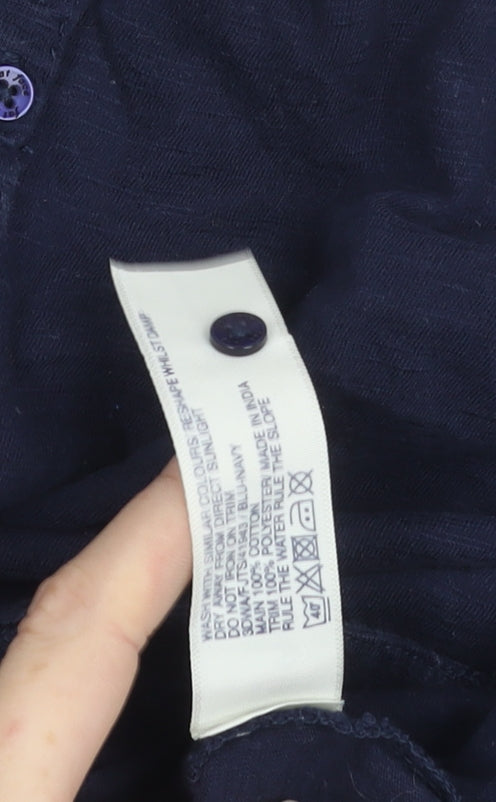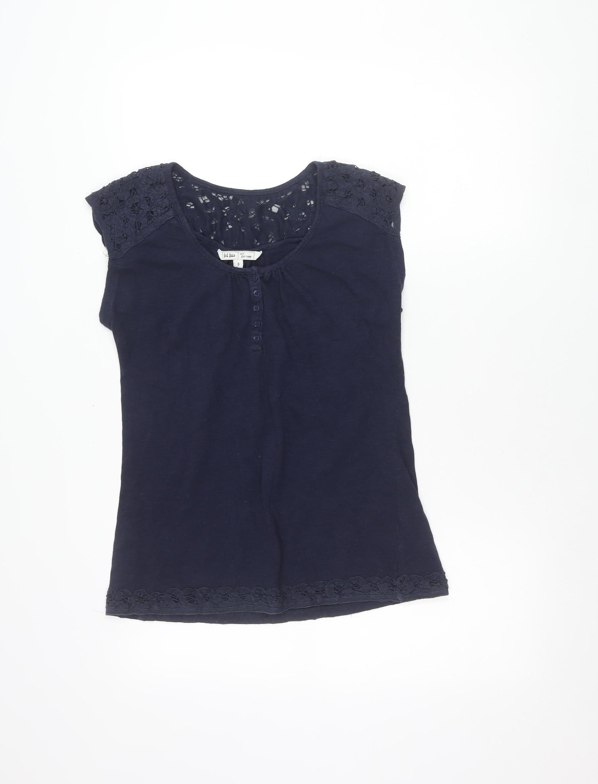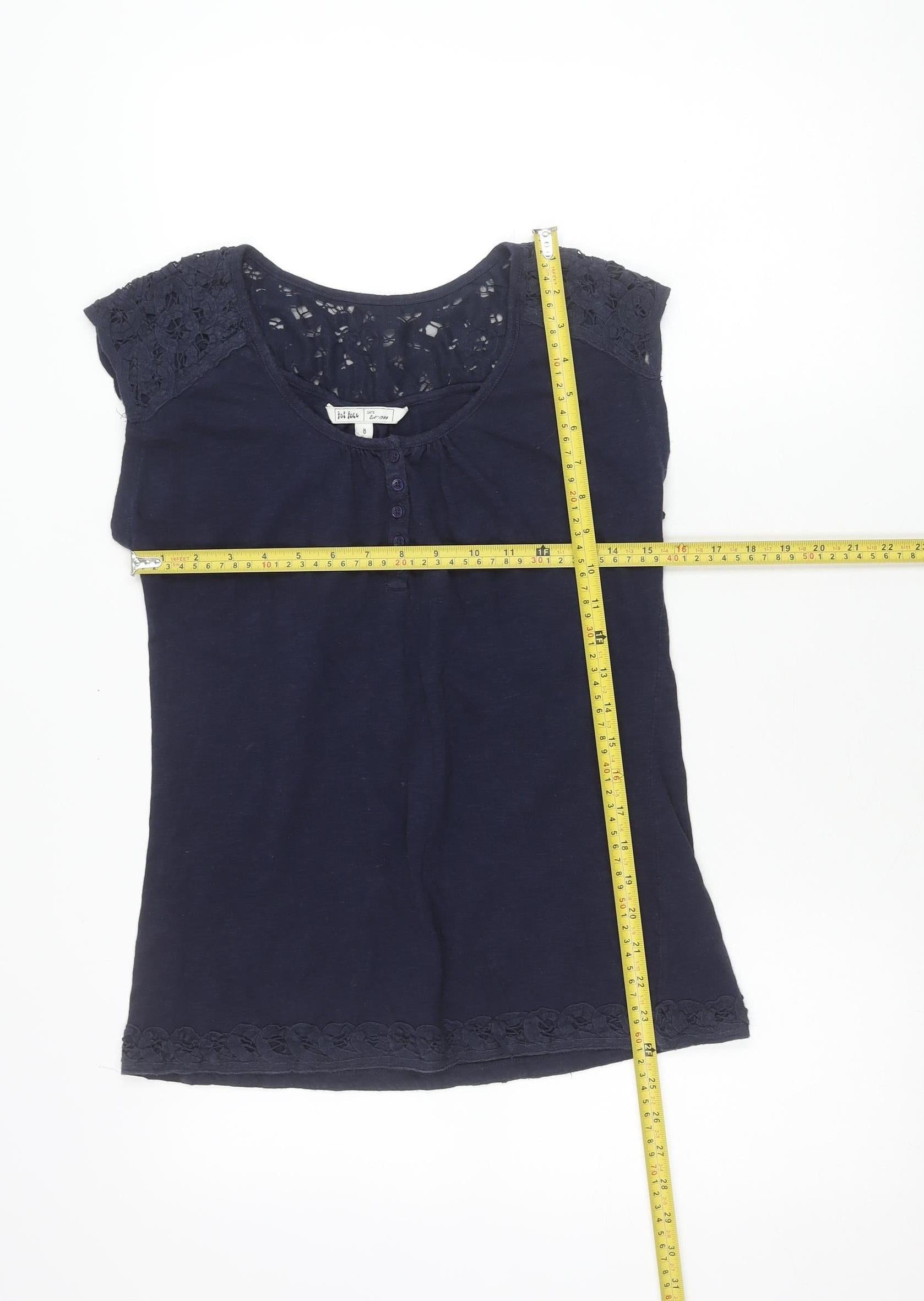 Fat Face Women’s Blue Cotton Crochet Blouse Top Size 8 Scoop Neck
