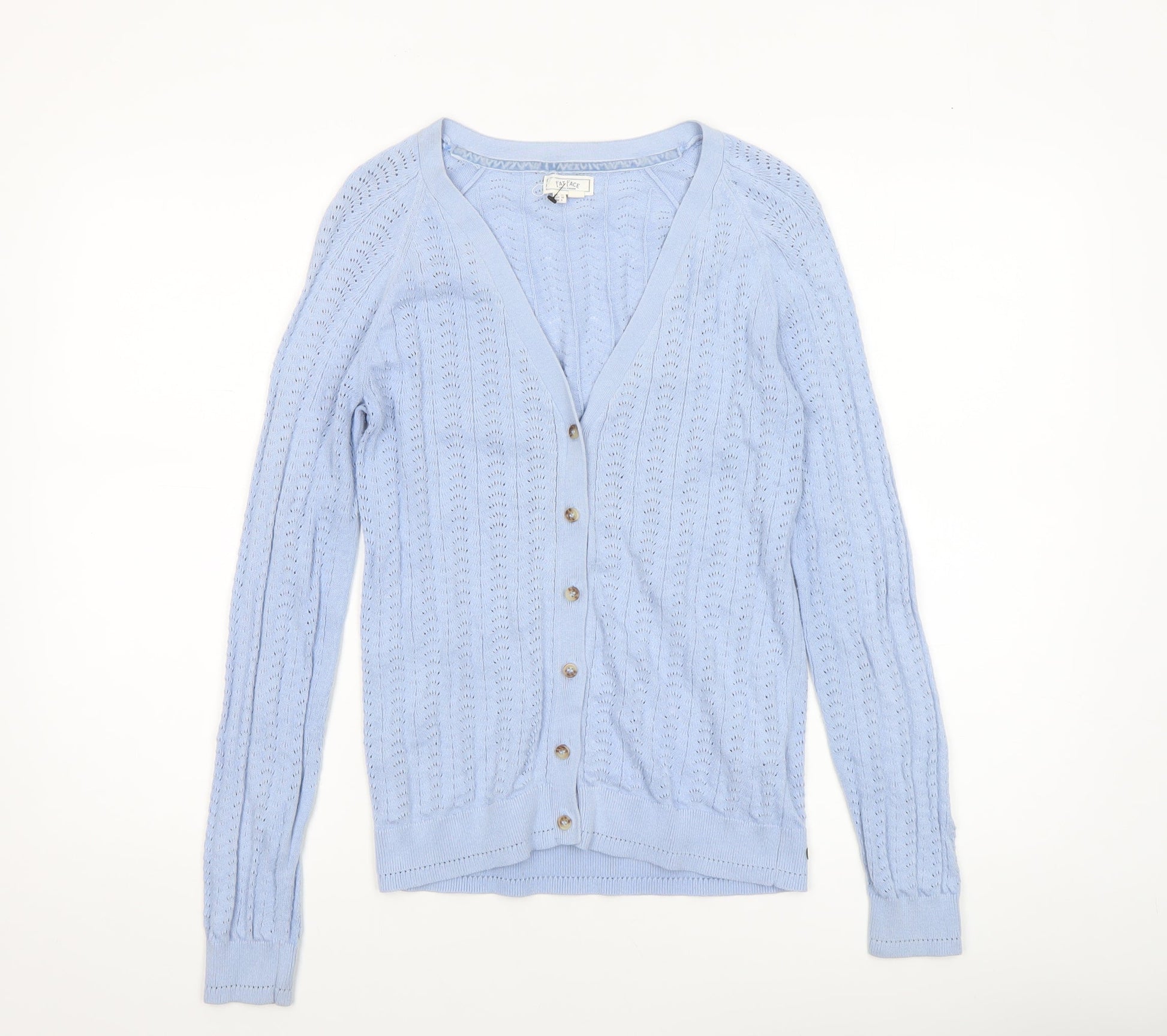 Fat Face Women’s Blue Cotton V-Neck Button Cardigan Size 10