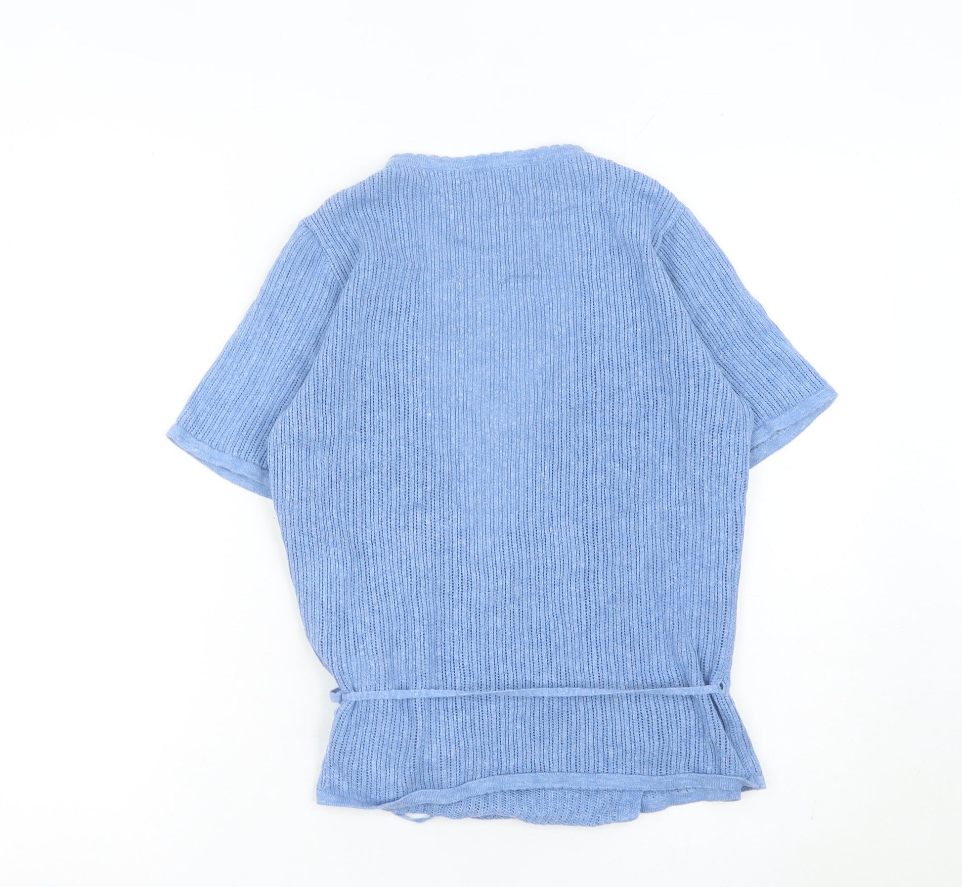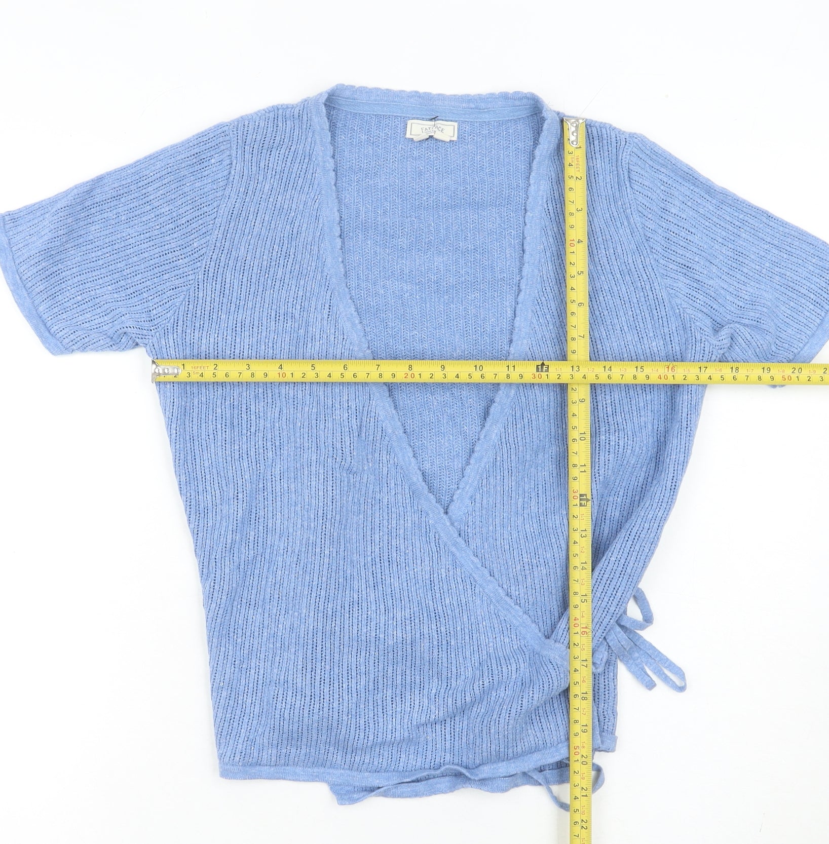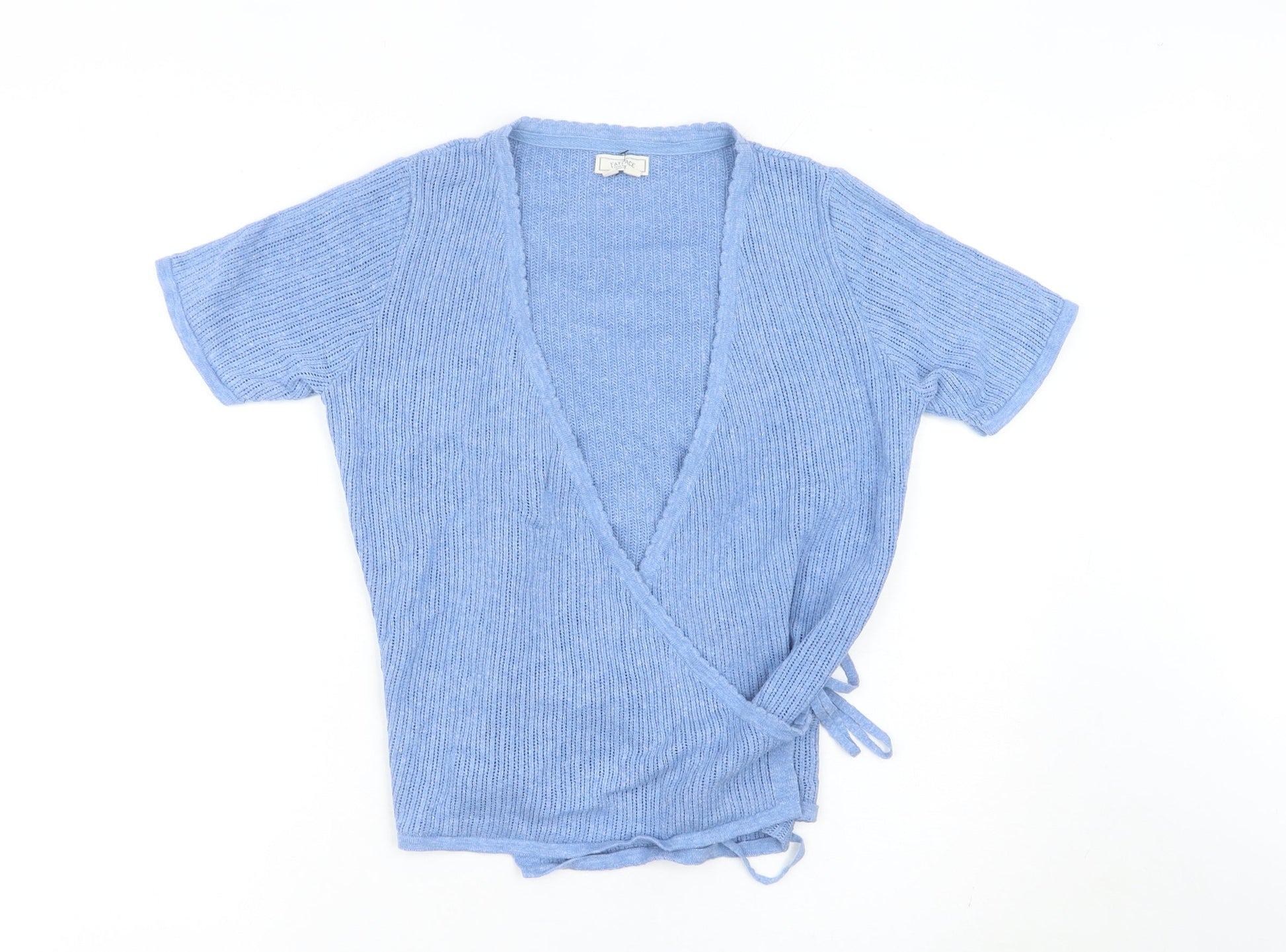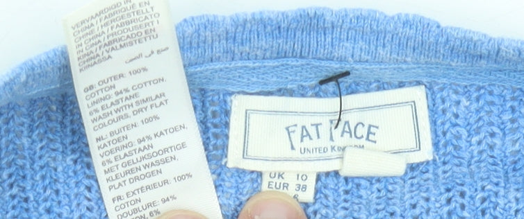 Fat Face Women’s Blue Cotton Wrap Jumper Size 10 Short Sleeve Knit