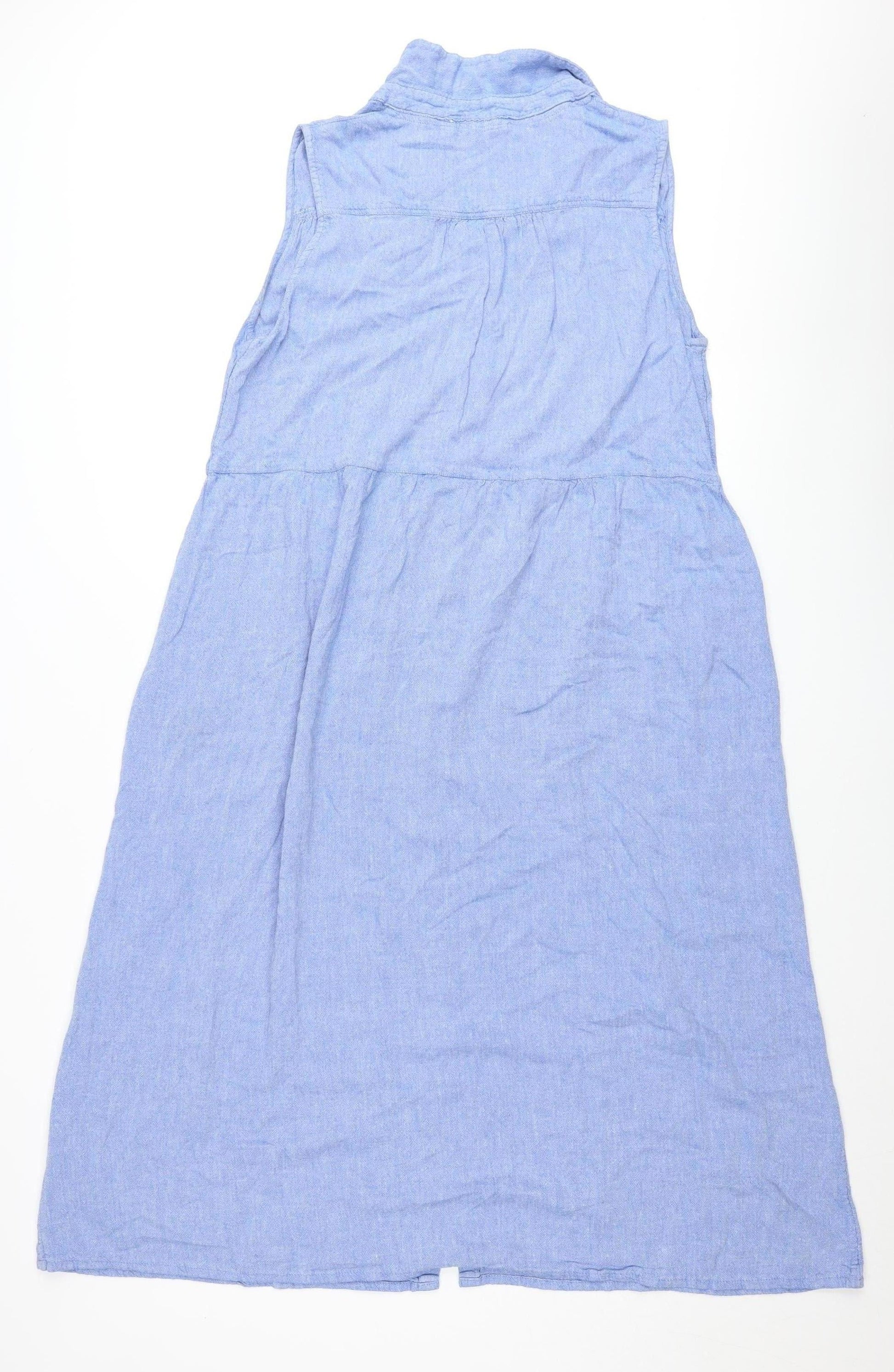 Fat Face Women’s Blue Linen Shirt Dress Size 16 Midi Sleeveless