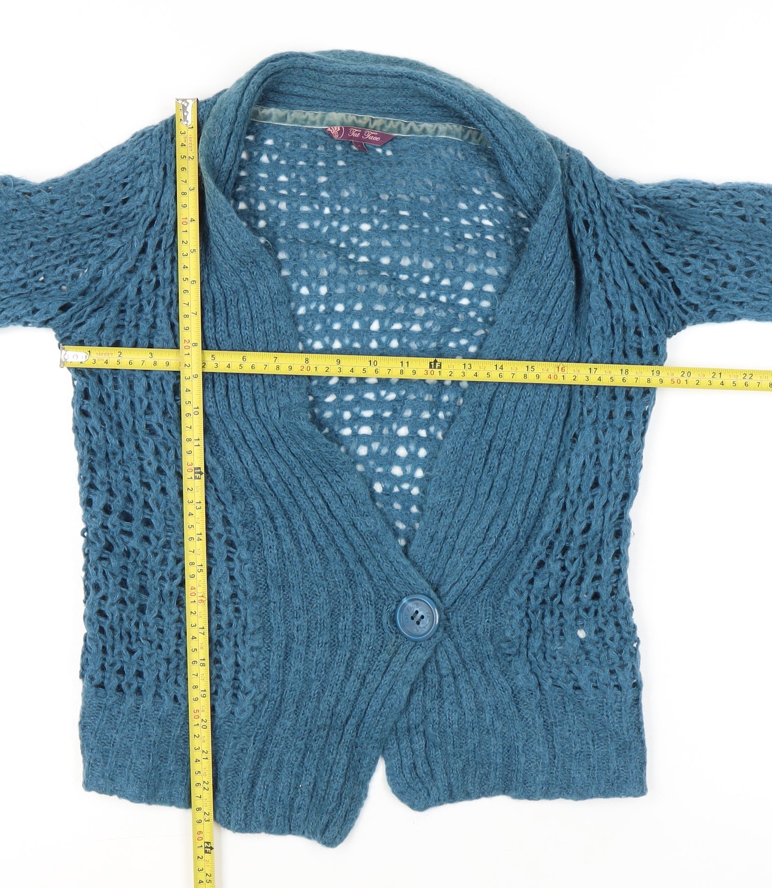 Fat Face Women’s Blue Mohair Blend Cardigan Size 8 Open Knit