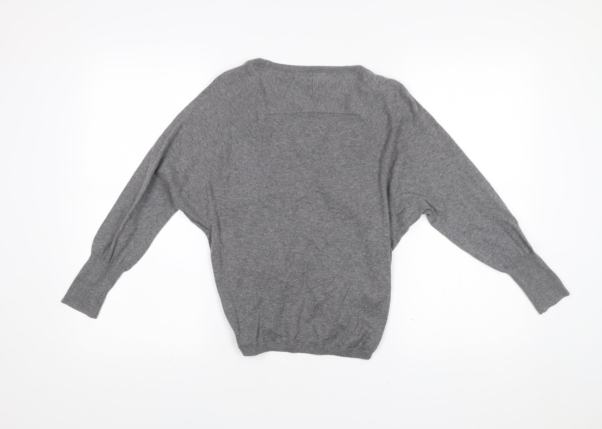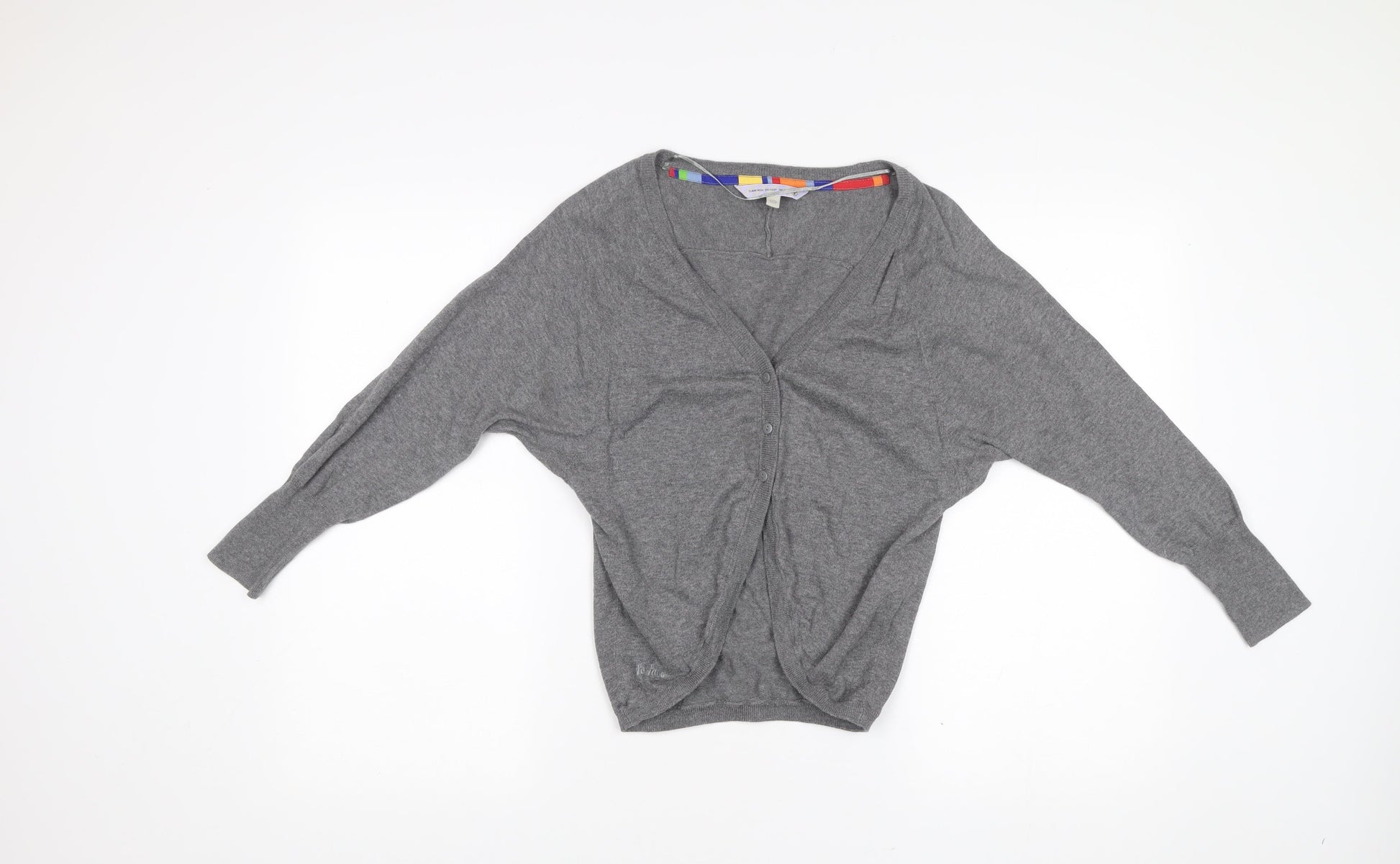 Fat Face Women’s Grey Cotton Cardigan Size 10 V-Neck Long Sleeve Knit