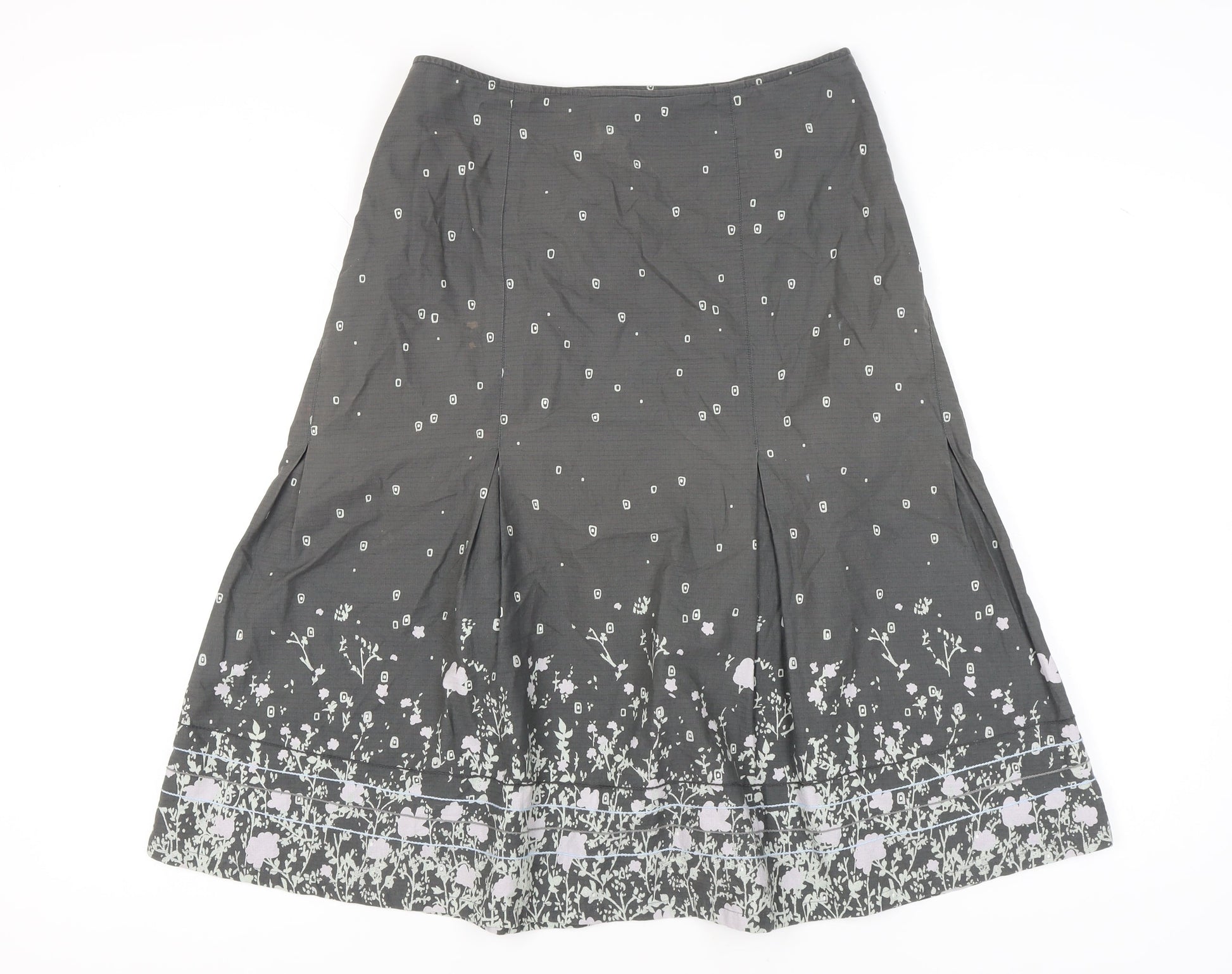 Fat Face Women’s Grey Floral A-Line Cotton Skirt Size 12