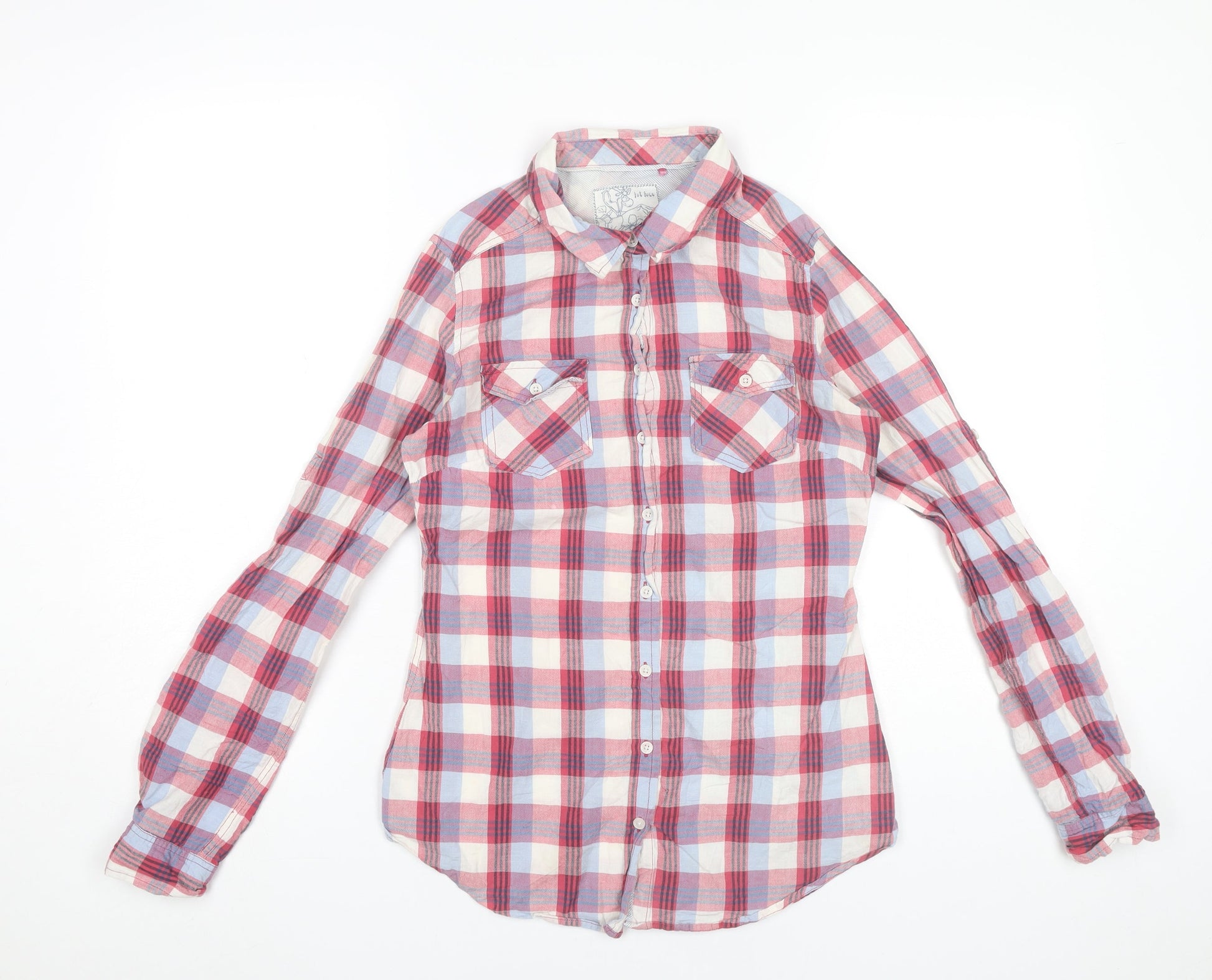 Fat Face Women’s Multicoloured Check Cotton Long Sleeve Button-Up Shirt Size 8