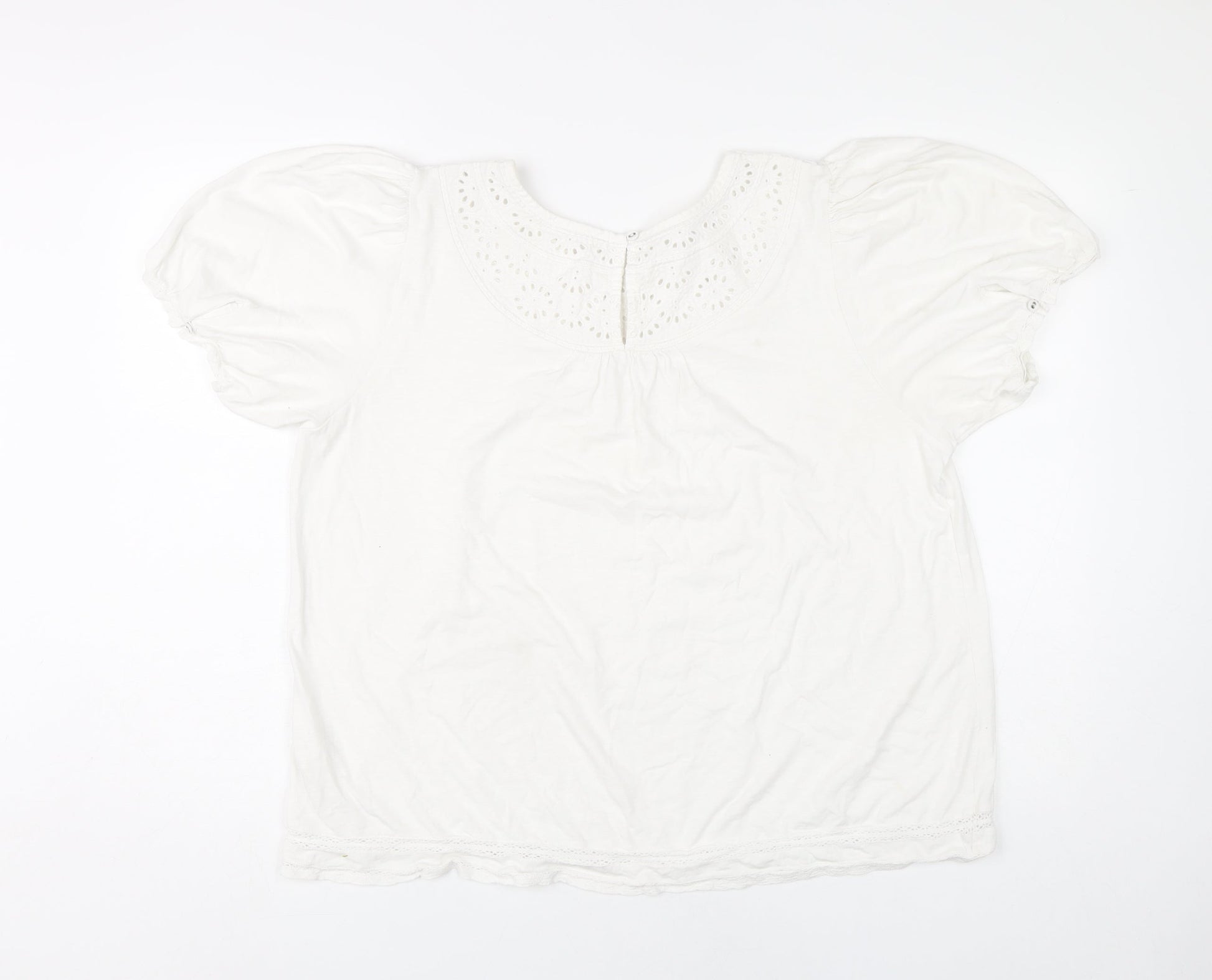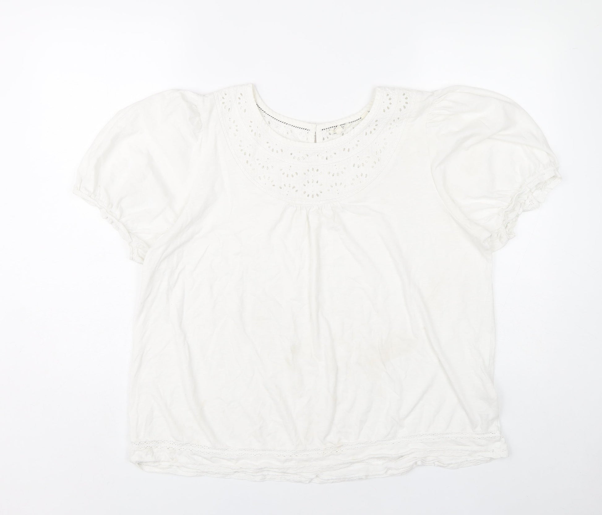 Fat Face Women’s White Size 16 Puff Sleeve Embroidered Blouse