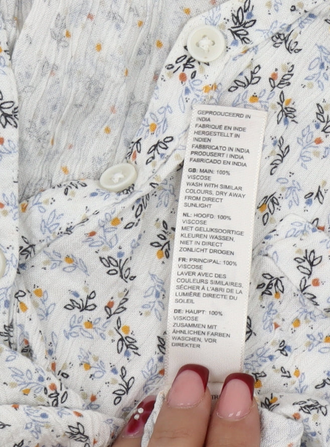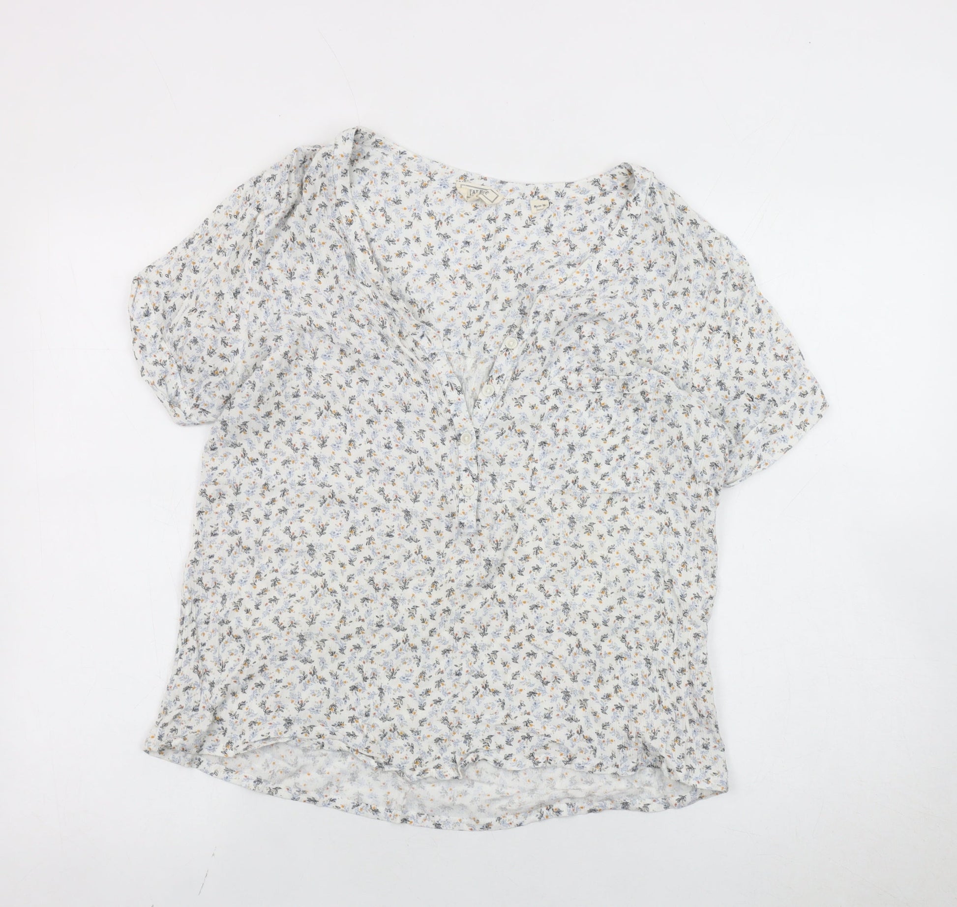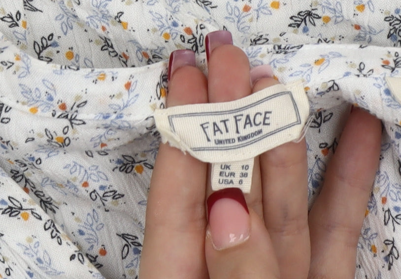 Fat Face Women White Floral Viscose Short Sleeve Blouse UK 10