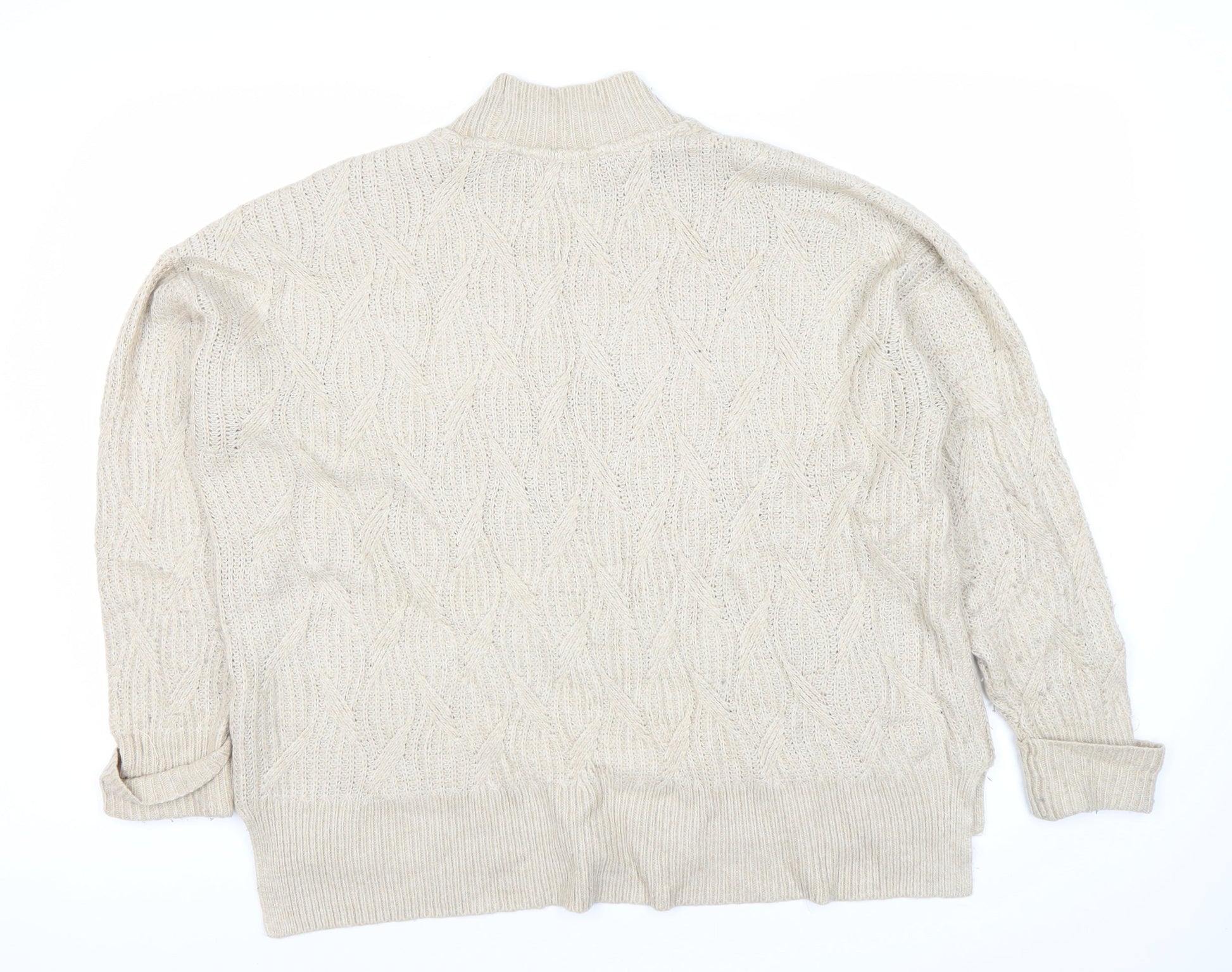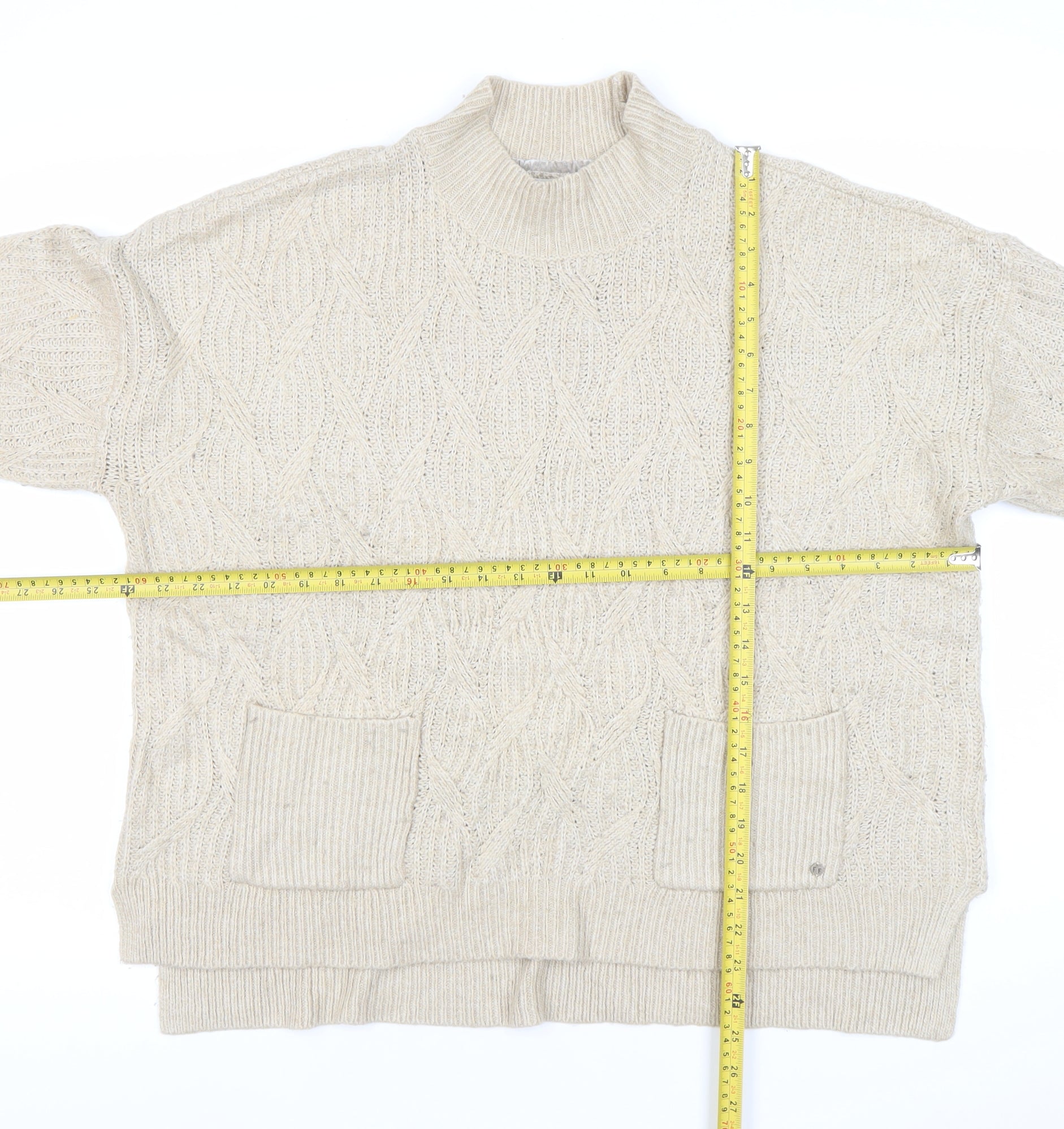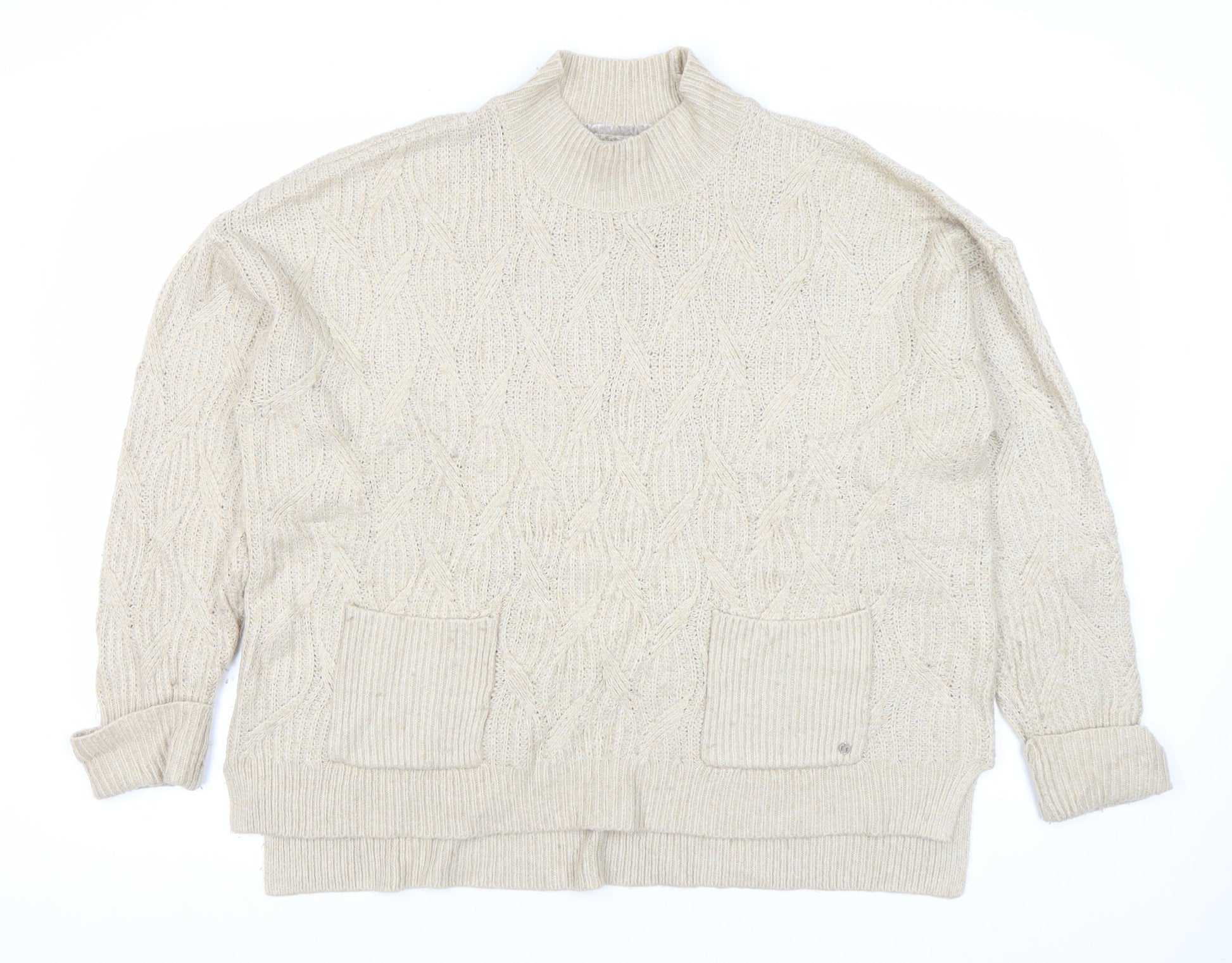Fat Face Womens Beige Cable Knit Mock Neck Pullover Jumper Size 14