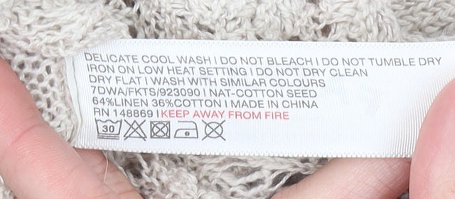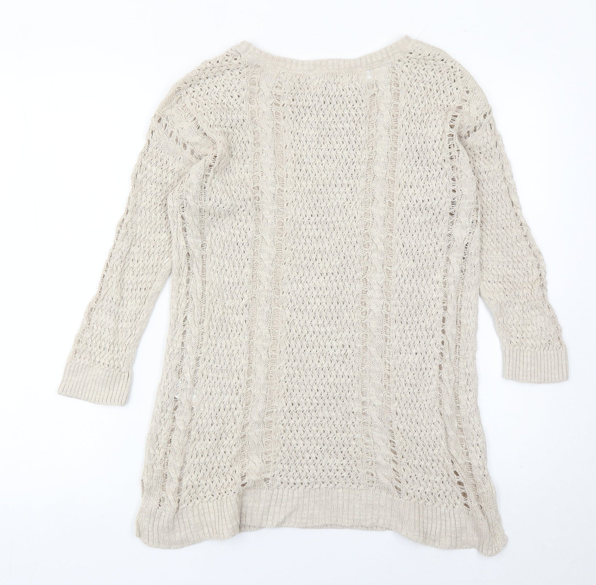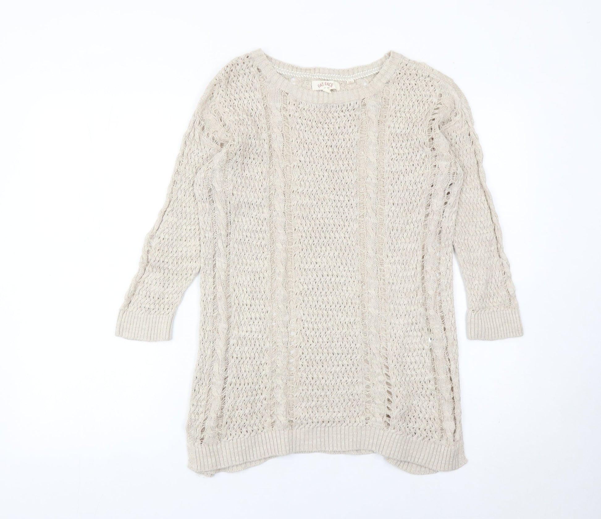 Fat Face Womens Beige Size 10 Crew Neck Open-Knit Jumper