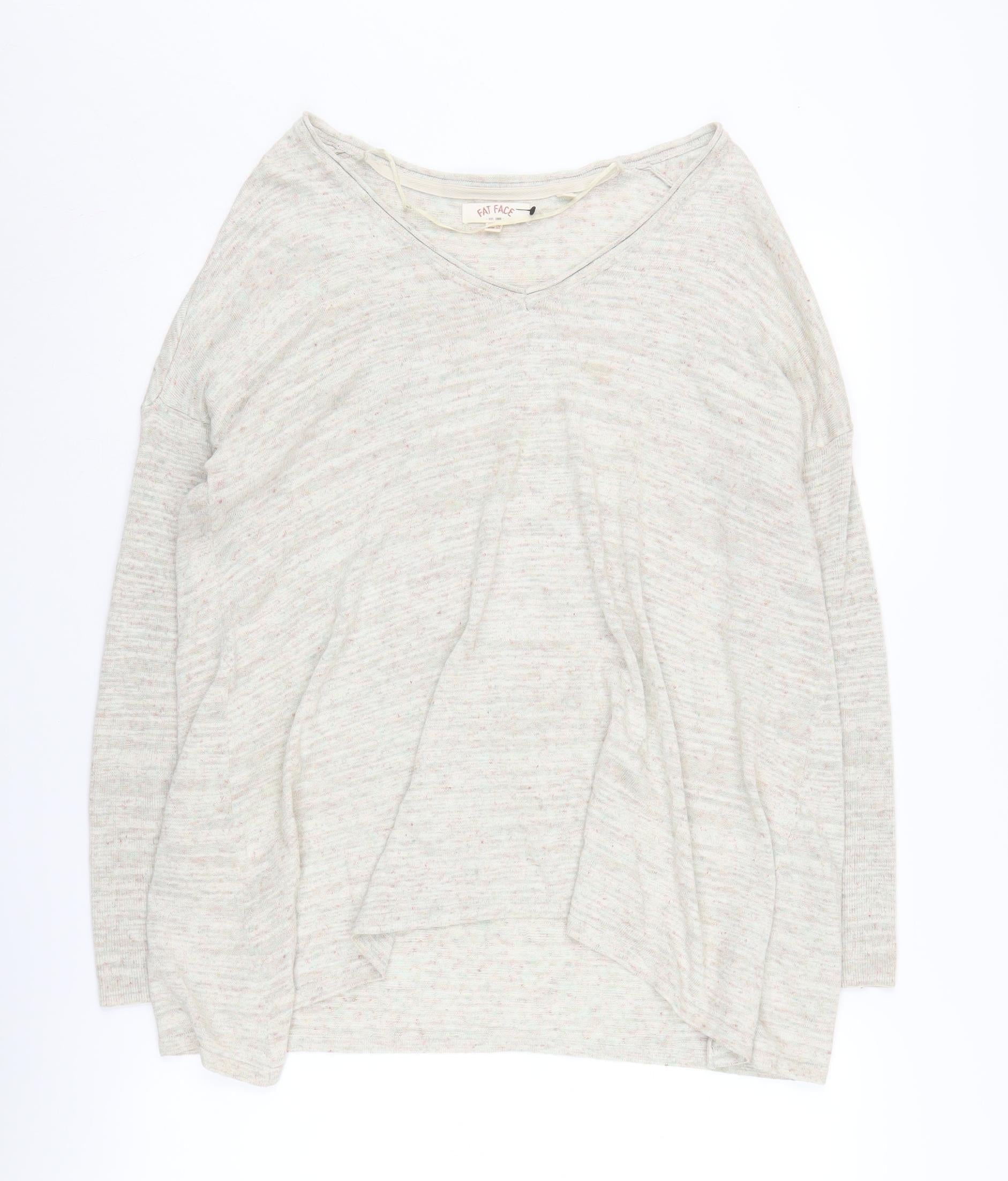 Fat Face Women's Beige V-Neck Knit Pullover Size 10