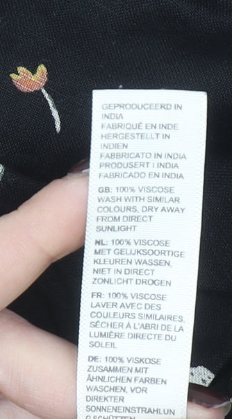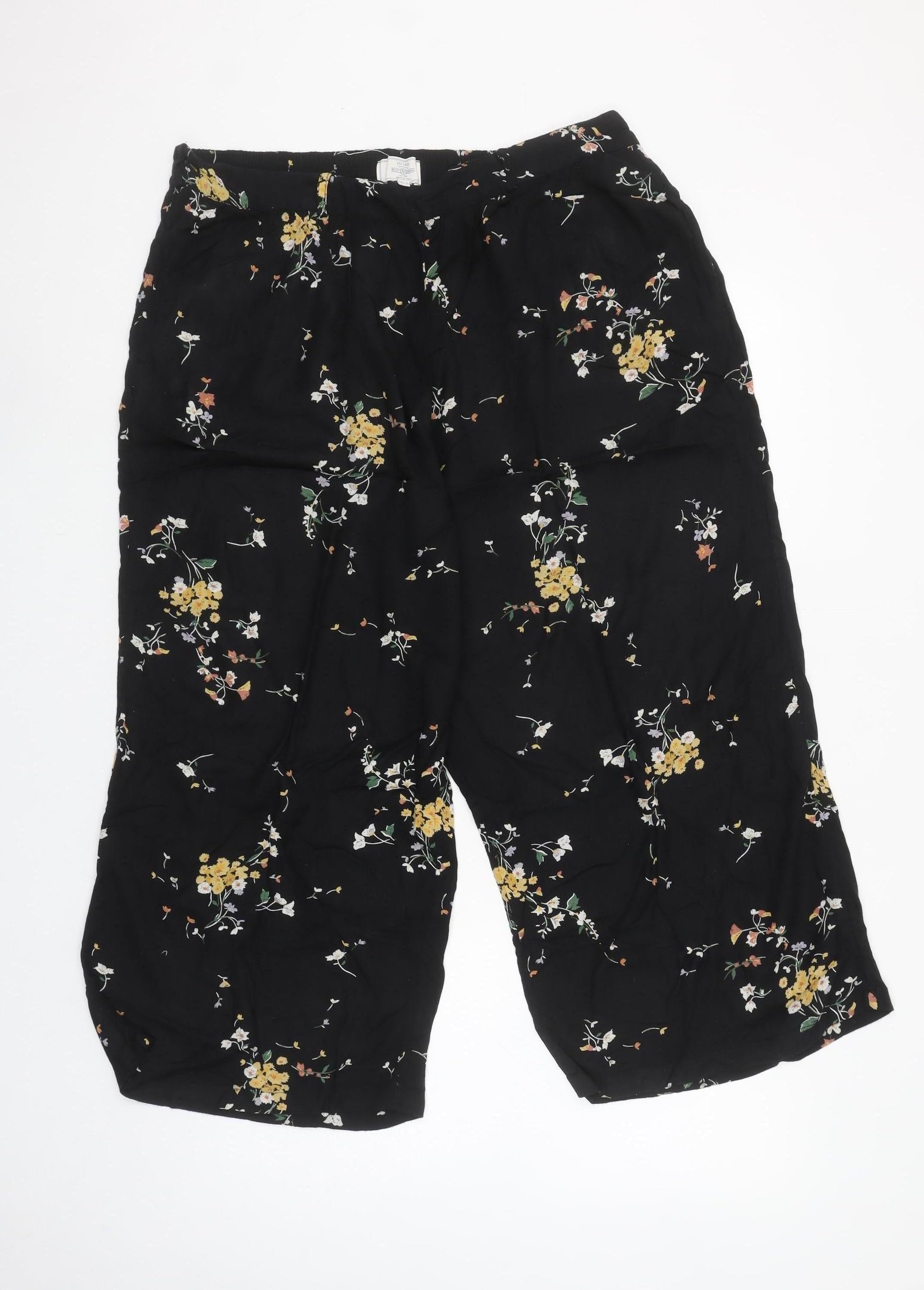 Fat Face Womens Black Floral Cropped Wide-Leg Trousers Size 16