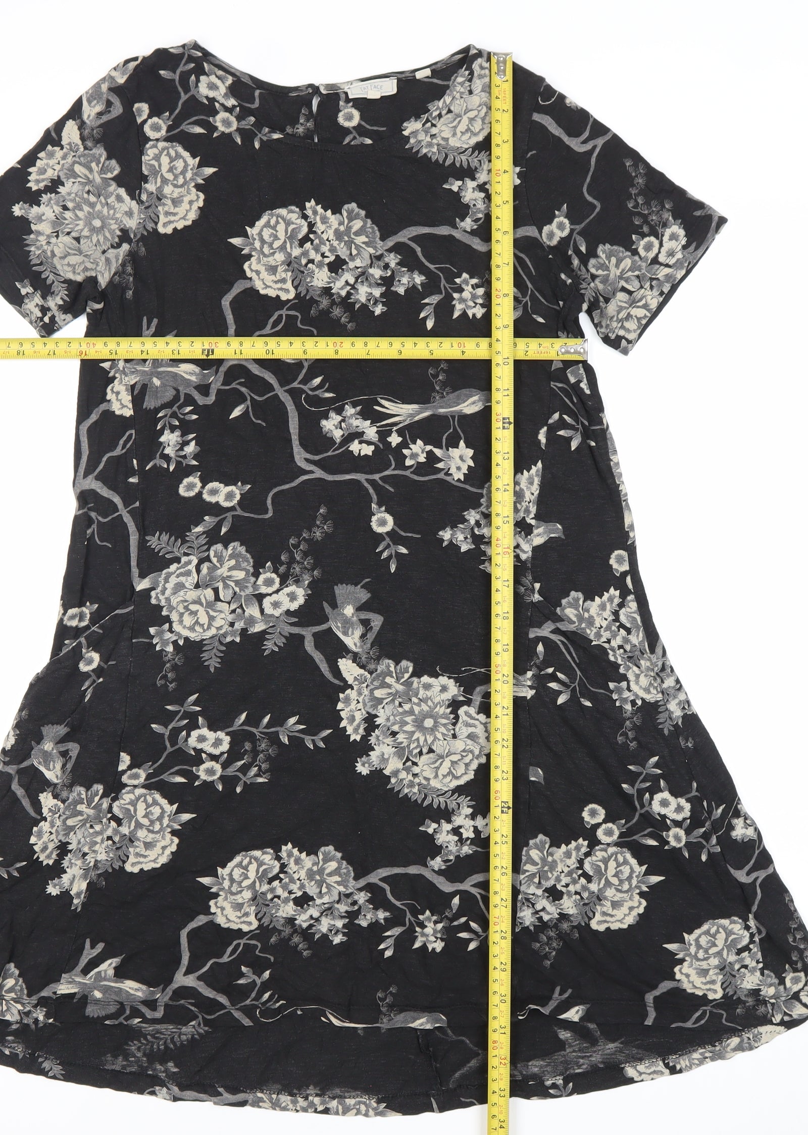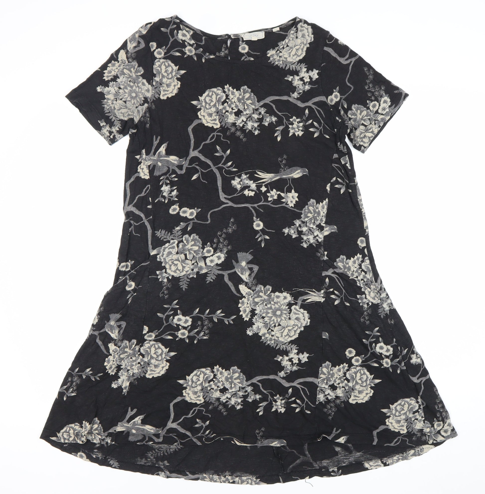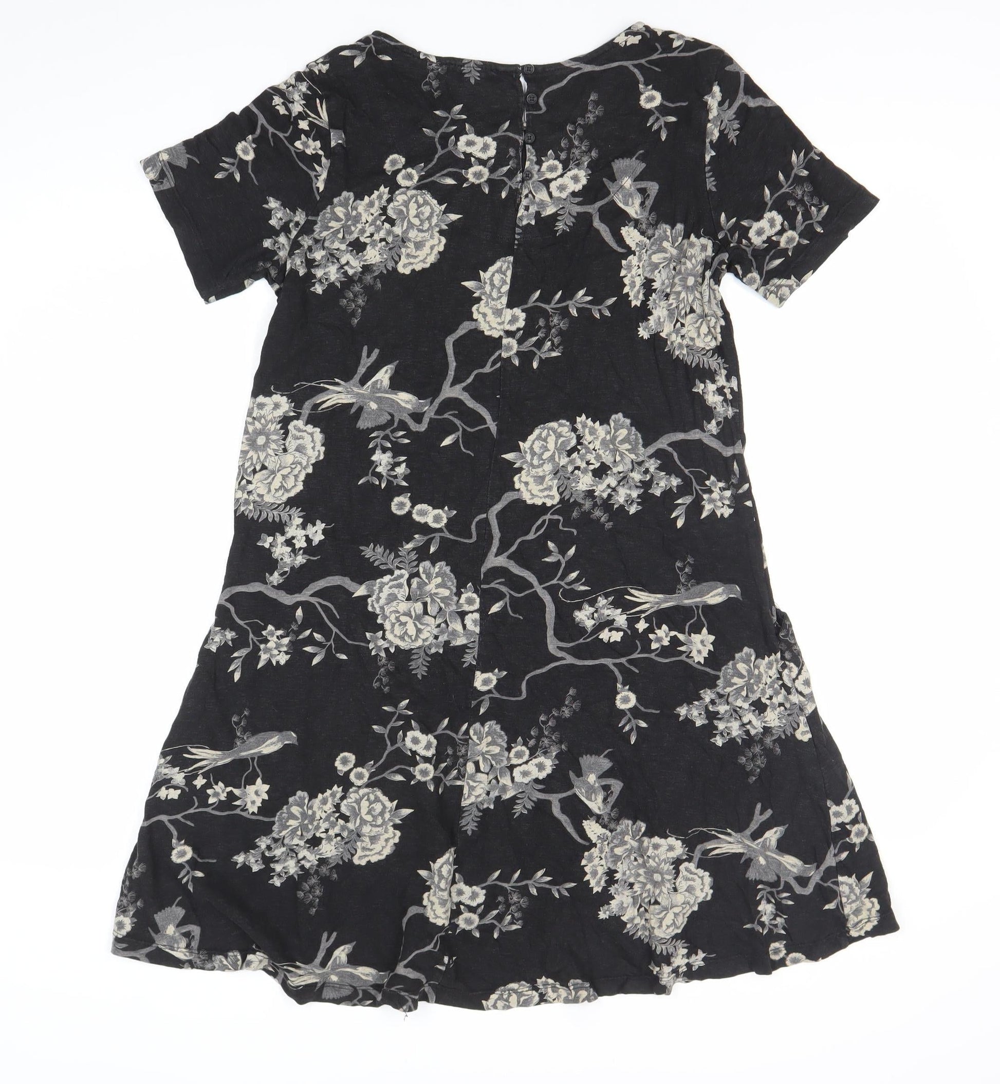 Fat Face Womens Black Floral Shift Dress Size 8 Short Sleeve
