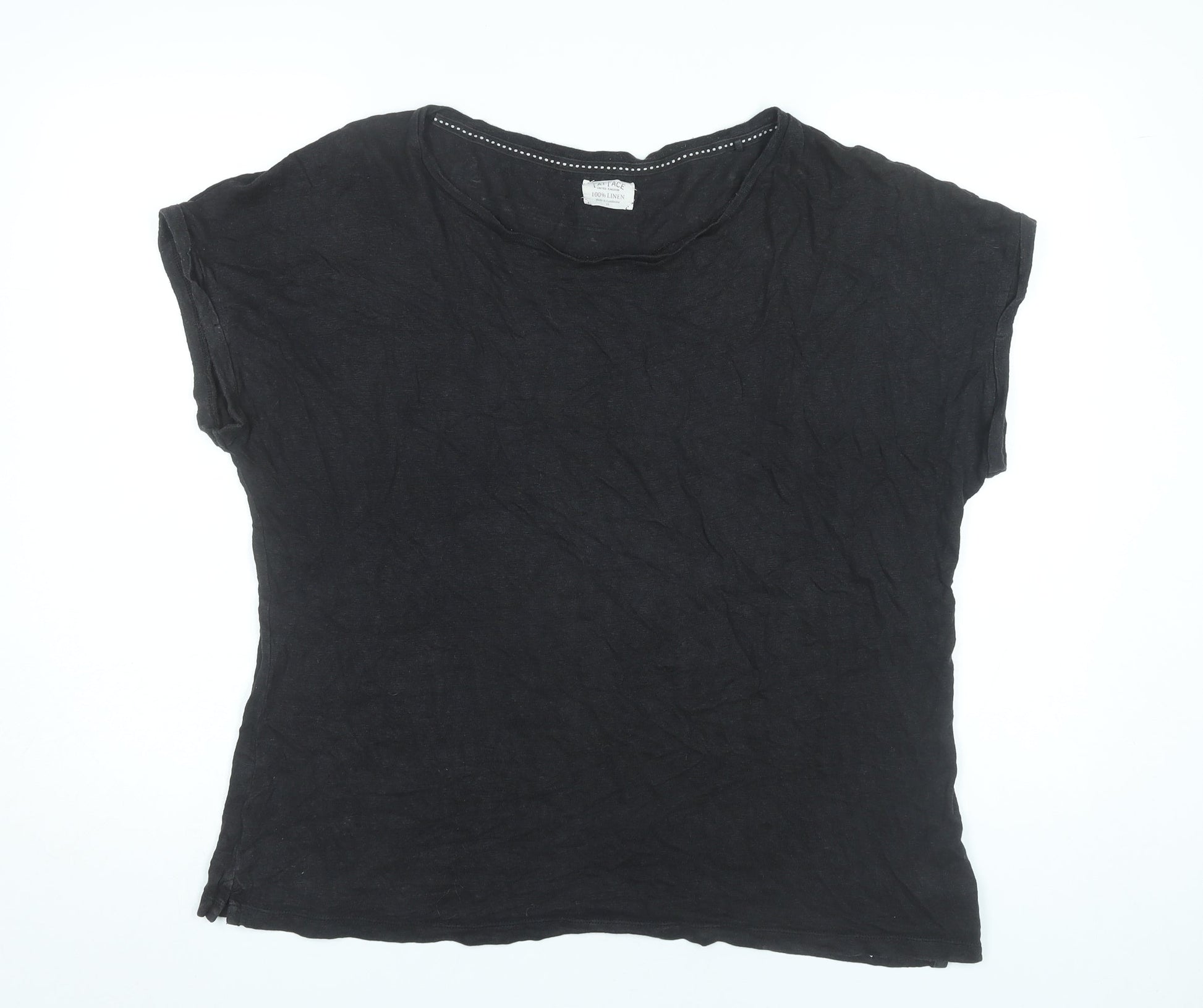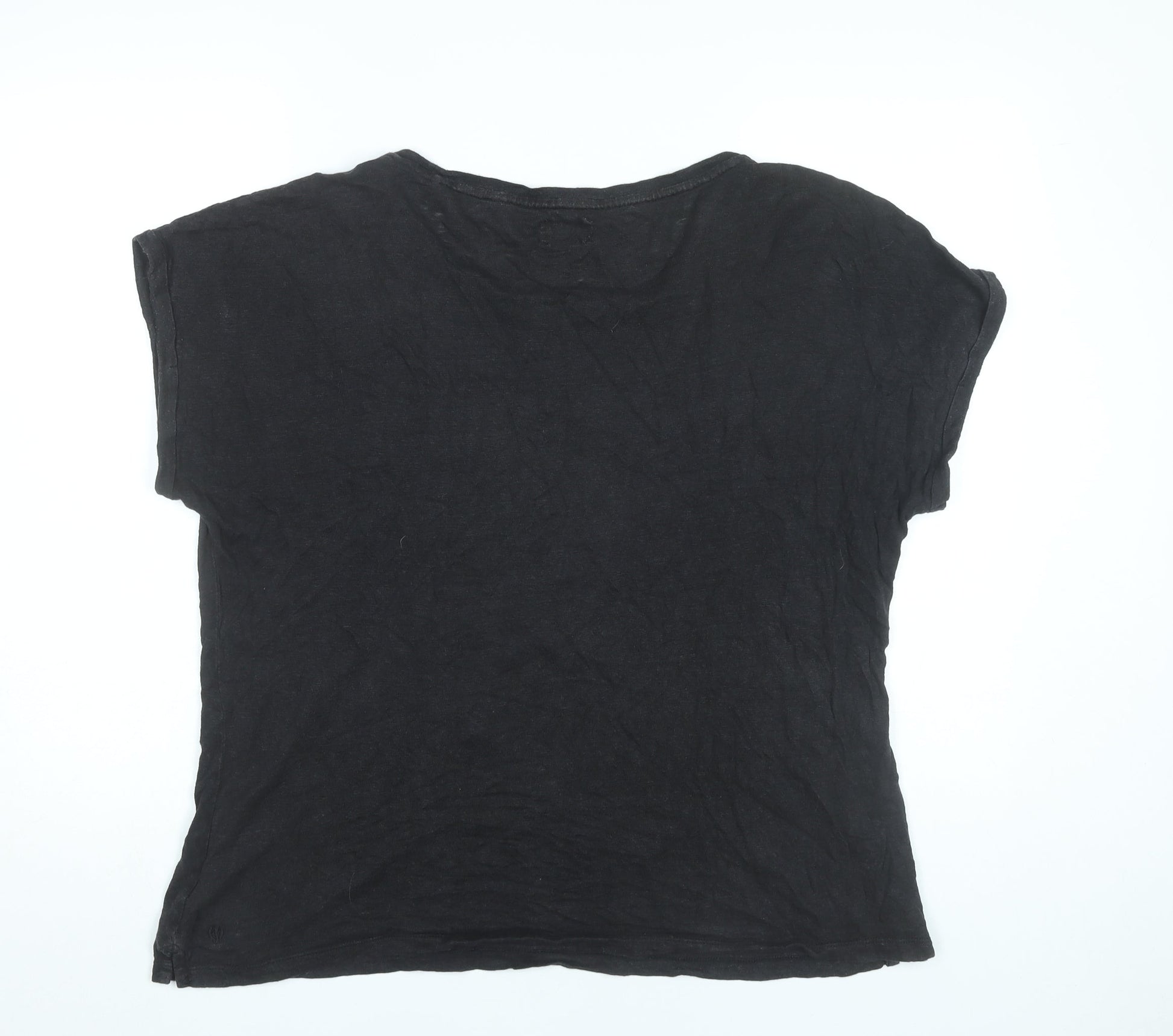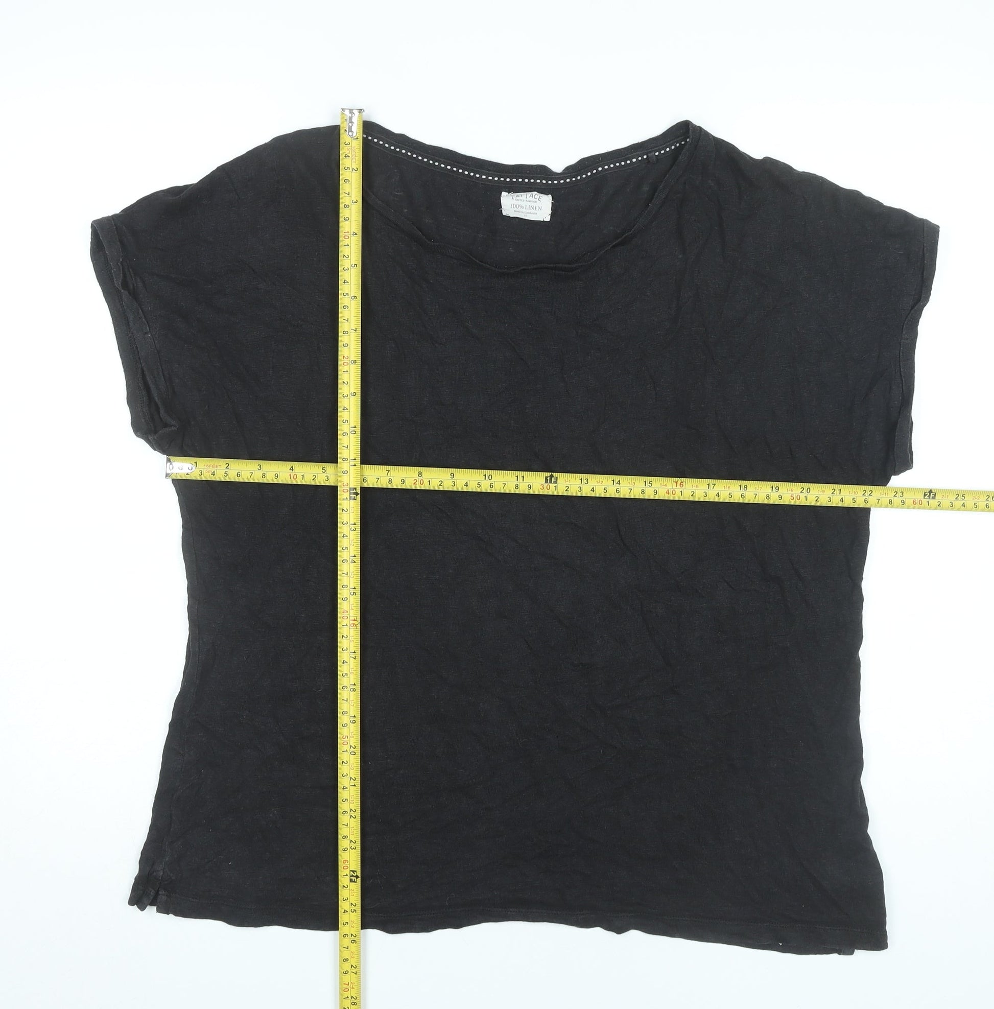 Fat Face Womens Black Linen T-Shirt Size 16 Casual Summer Top